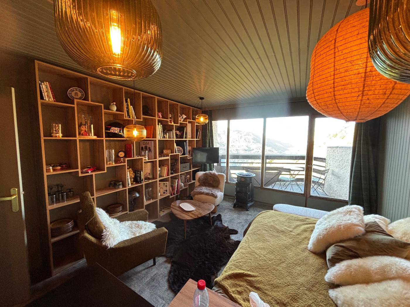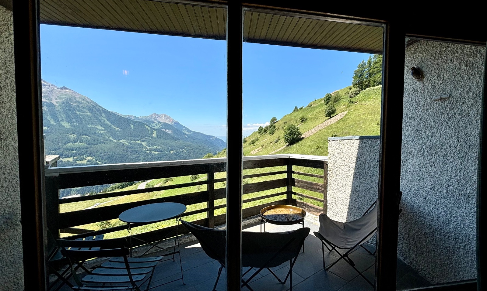 Orientée Sud/Sud Ouest, la terrasse est équipée d’un salon et d’une table pour déjeuner ou diner devant un magnifique coucher de soleil avec une vue exceptionnelle dégagée et sans vis a vis sur les montagnes.