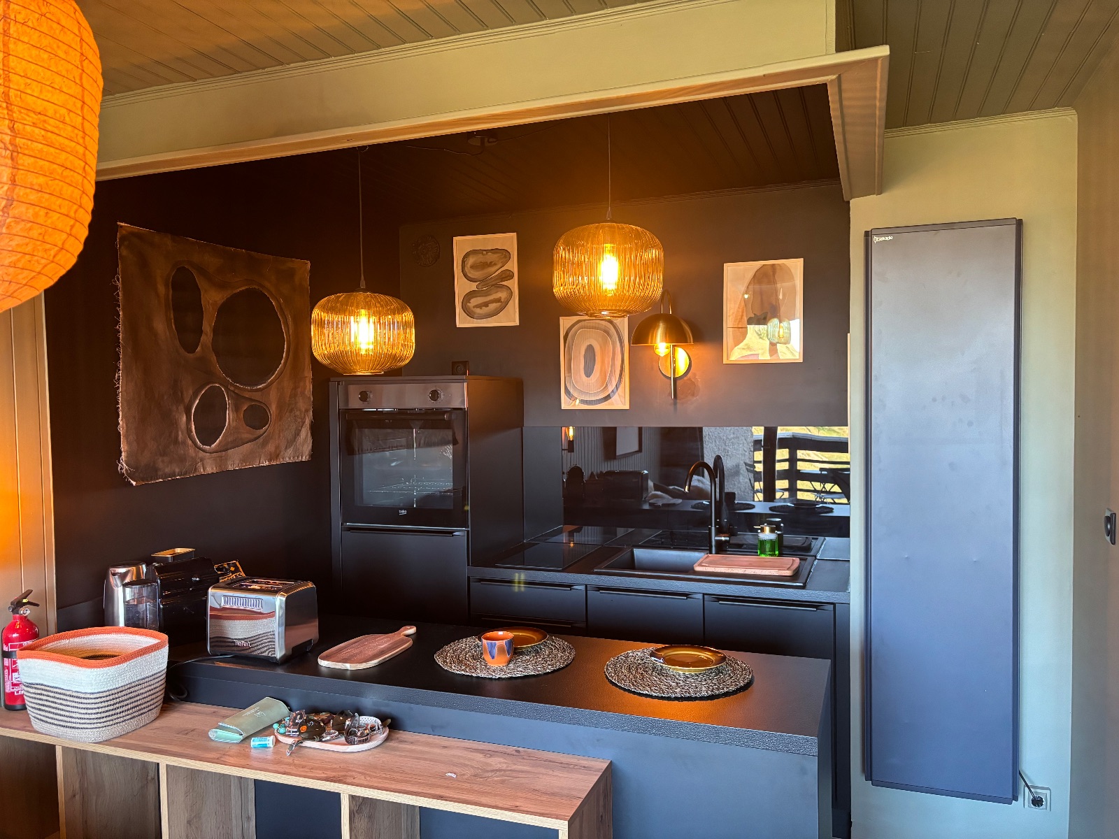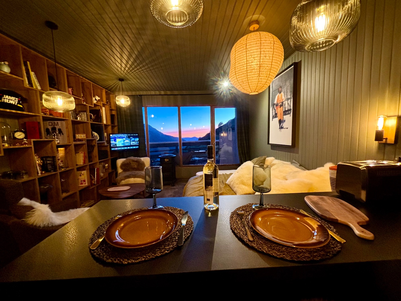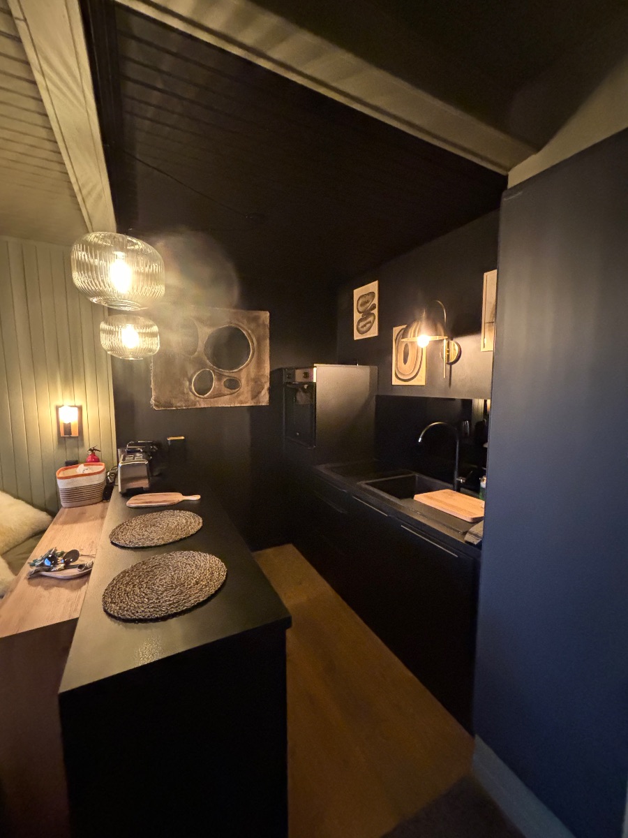 La cuisine équipée neuve (lave vaisselle, four, frigo, plaques, vaisselle design, cafetière Nespresso, appareil à raclette/fondue/pierrade) vous permettra de vous préparer des repas biens mérités après une journée de ski ou de randonnée, a déguster sur le bar, sur la terrasse ou dans le salon bibliothèque …. Toujours en profitant de la vue