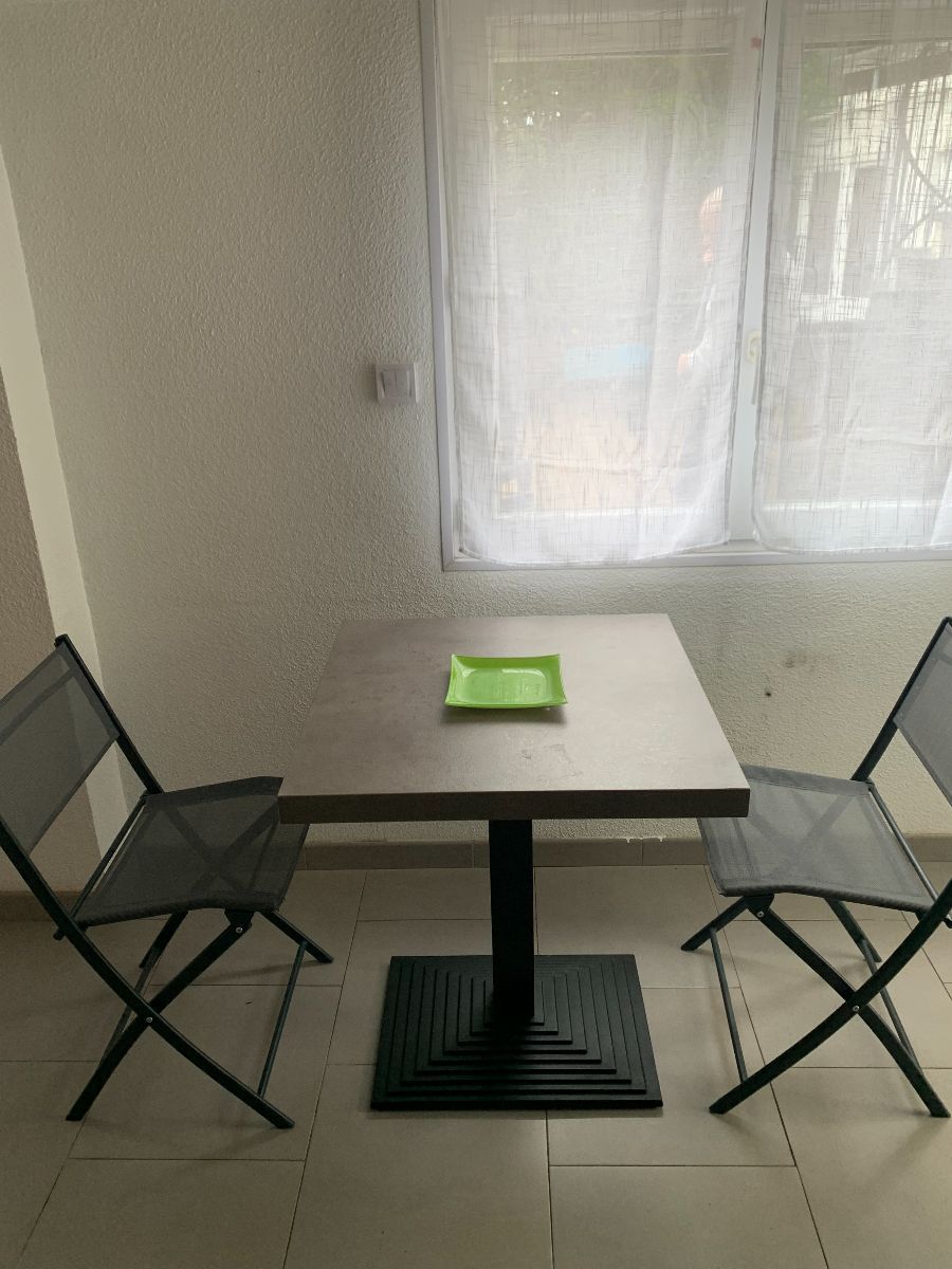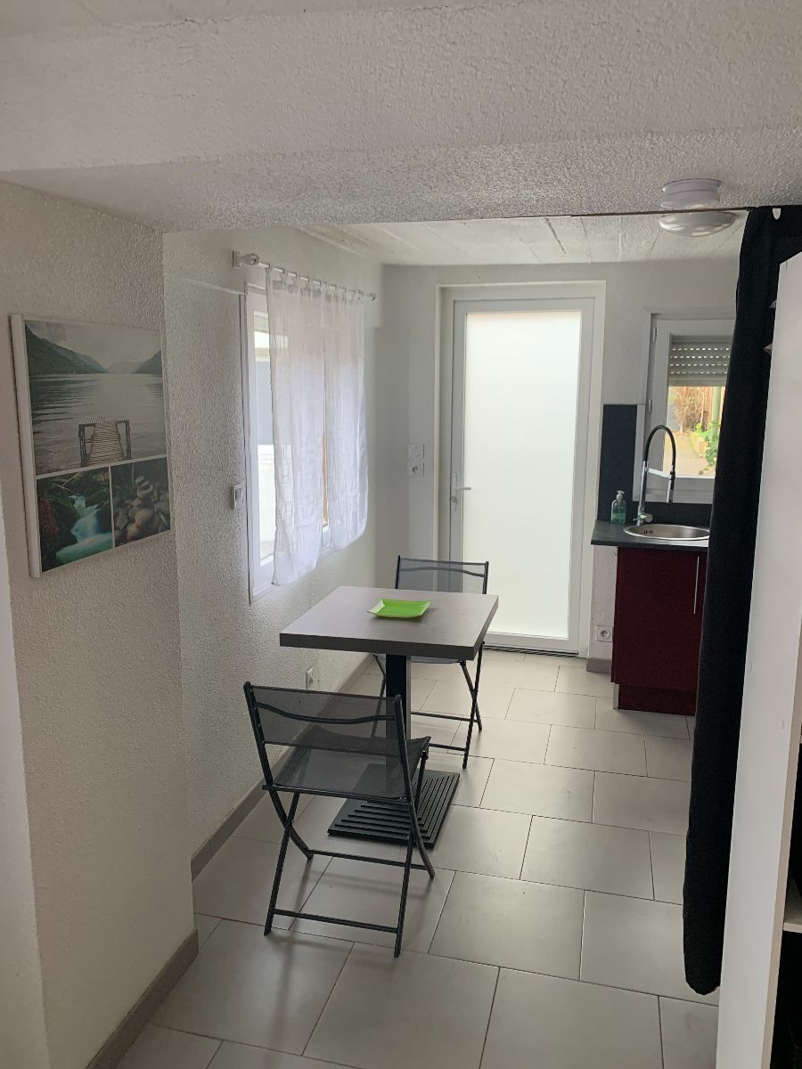 Le studio est dans une cour avec une grande terrasse equipee d'un salon de jardin et à l'abri des regards.