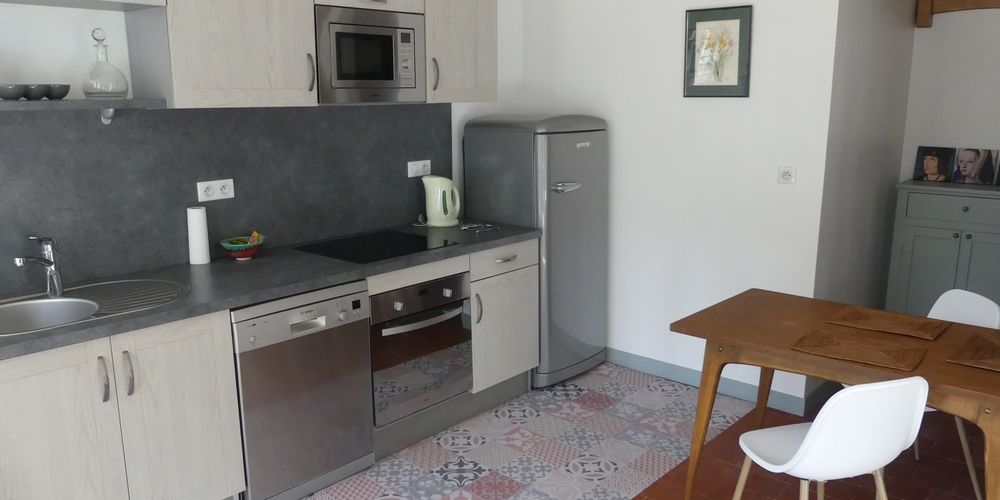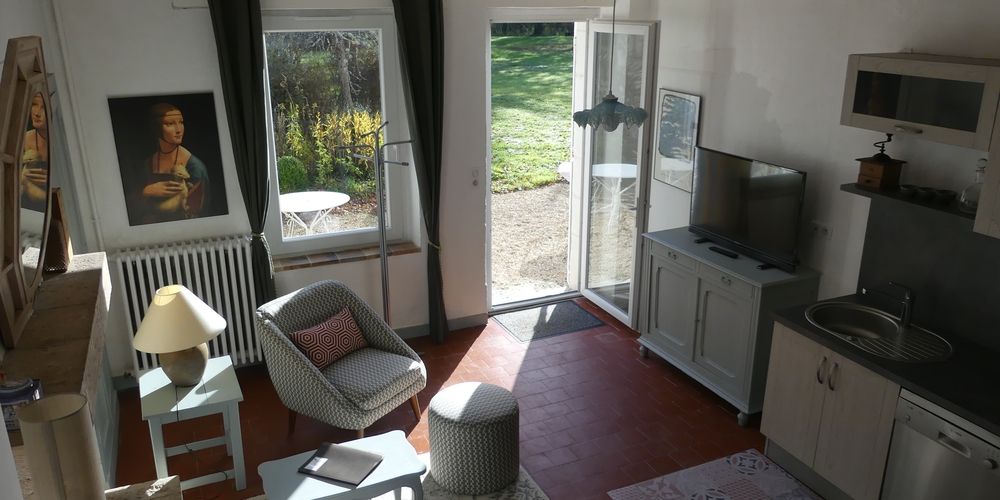 A l'extrémité du batiment, c'est un gîte, pour 2 personnes, entrée indépendante donnant sur le parc, constitué de deux pièces, une au rez-de-chaussée et une à l'étage.