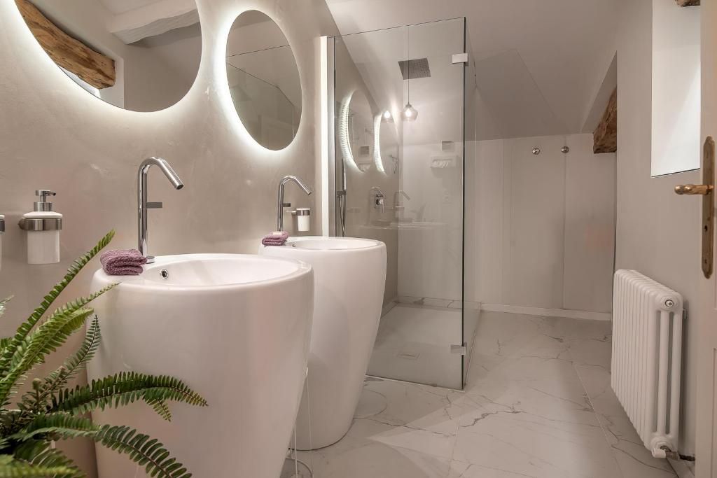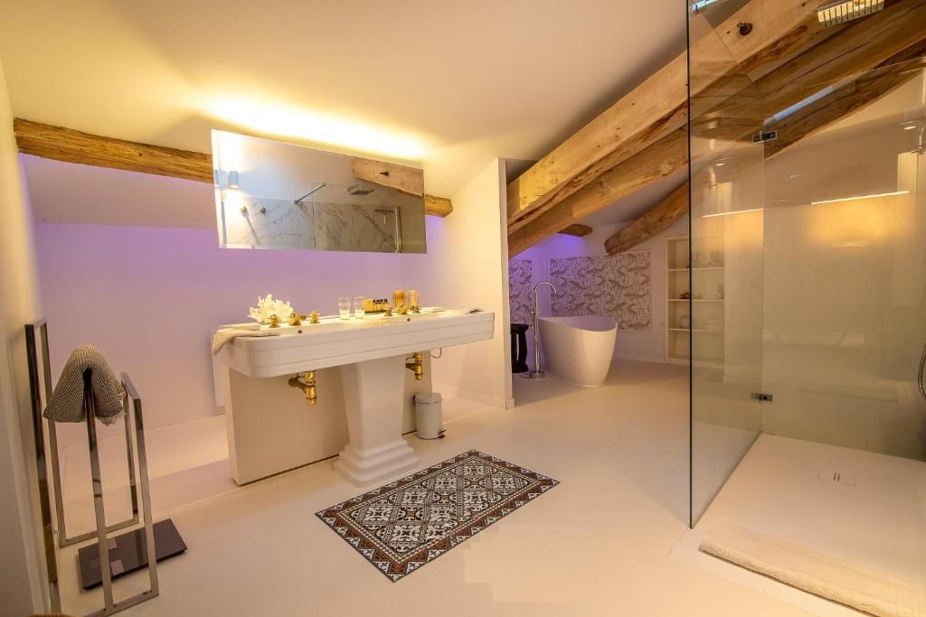 Chaque suite dispose d’une chambre spacieuse, d’un salon confortable et d’une salle de bains moderne. L’une est équipée d’une douche à l’italienne et d’une baignoire, l’autre d’une large douche à l’italienne.