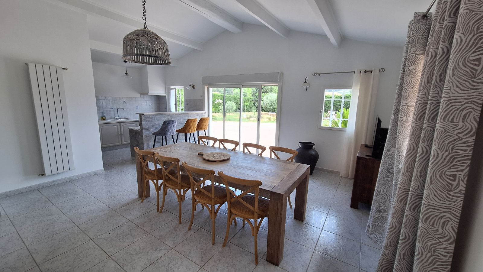 Grande cuisine à disposition pour préparer vos repas. Des tables sont également à dispositions dans la salle à manger du gîte et sur les terrasses extérieures.