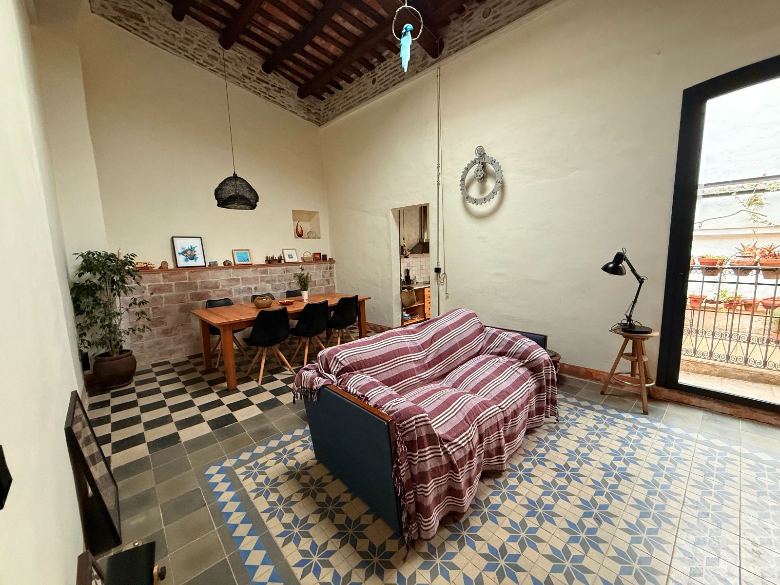 L'accès au deuxième étage se fait par un élégant escalier. Là, vous trouverez votre chambre avec un grand lit et un balcon donnant sur la rue, votre salle de bain lumineuse avec une douche ouverte, le salon avec une cheminée et un autre balcon donnant sur le "patio", ainsi que la cuisine qui contient également sa terrasse privée. Parmi les équipements, vous trouverez le Wi-Fi, la télévision, une cuisinière à induction, un four, un micro-ondes, un réfrigérateur, une machine à laver, un lave-vaisselle et un ventilateur de plafond.