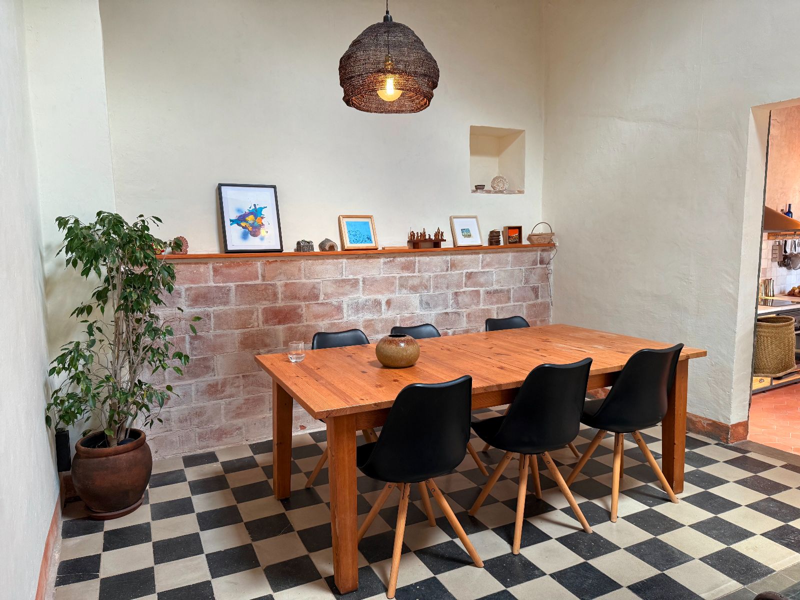 Je vous accueillerai dans une maison traditionnelle que j'ai rénovée moi-même, combinant des matériaux anciens avec toutes les installations modernes. Elle est divisée en deux étages et une terrasse supérieure. Au rez-de-chaussée, vous trouverez un joli hall avec une salle d'atelier qui peut être utilisée pour de nombreuses activités. Il y a aussi des toilettes avec une douche et deux autres chambres entourant un "patio" typique avec une fontaine.