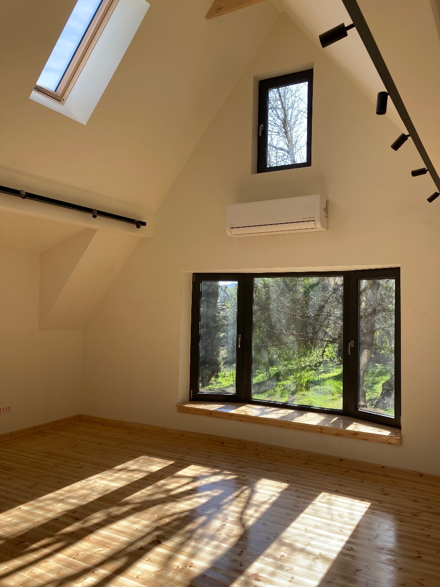 Un très grand balcon s’ouvre sur la forêt et l’air pur de la montagne.