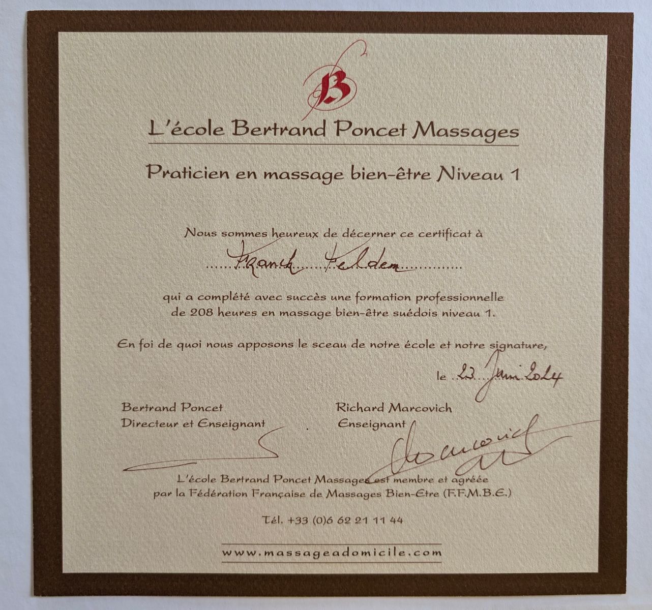 Je vous reçois dans le confort de mon cabinet à Nice (avec possibilité d'une place de stationnement privée dans la cour, sur demande lors de votre réservation). Pour plus de confort, je peux me déplacer sur votre lieu de villégiature à proximité de Nice.