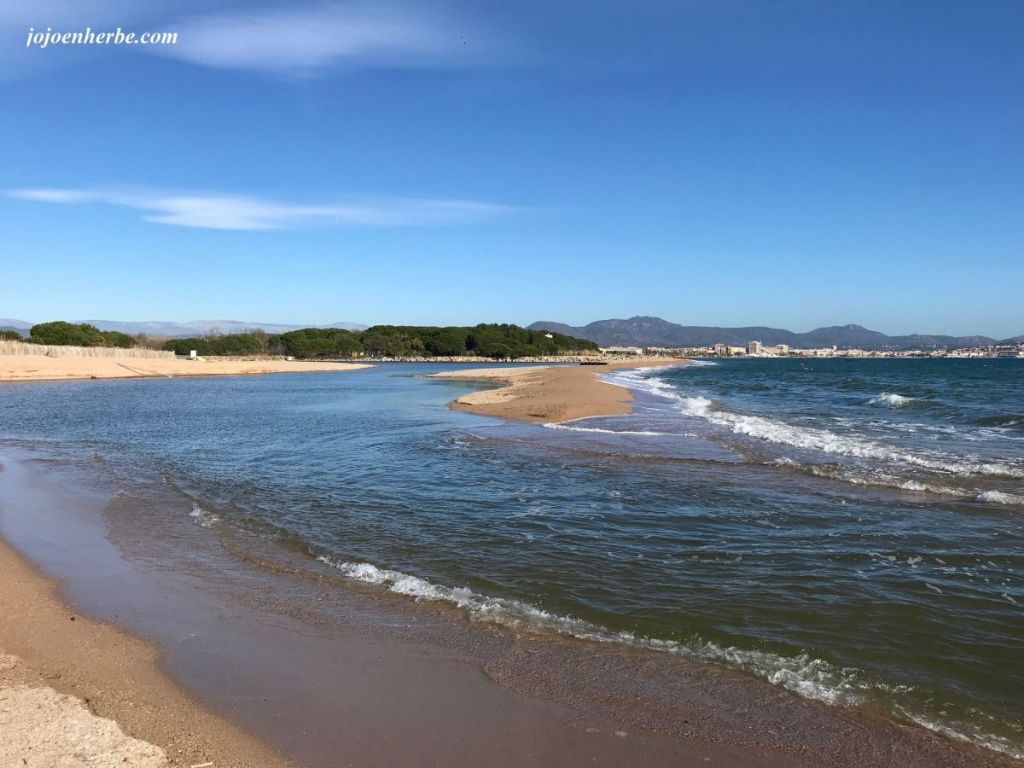 Accès à pied à la plage gay se situe juste à côté de l'embouchure du fleuve l'Argens. Plage textile et naturiste.