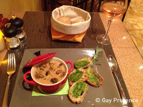 Entre terre et mer de girolles et st Jacques au beurre d'ail, espumas de citron vert 17€
