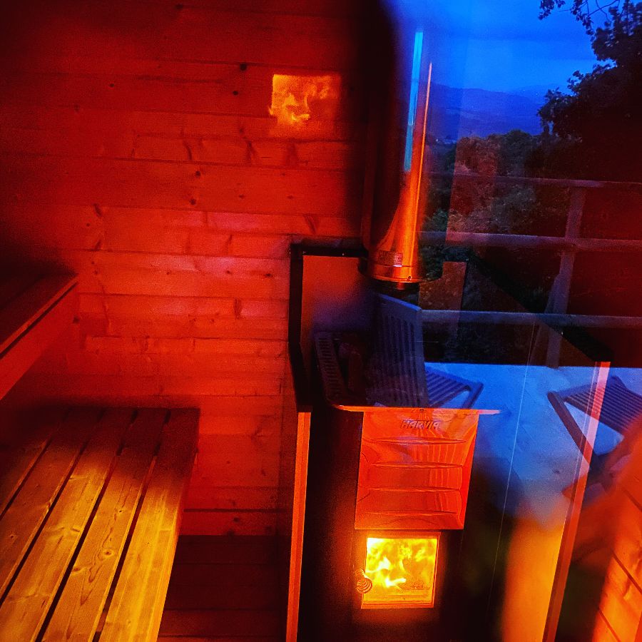 La maison principale est entourée de jardins en terrasses parfumés, les vêtements sont facultatifs - il y a beaucoup d'espace pour se détendre et se relaxer. De grandes chaises longues se trouvent au bord de notre piscine à débordement de 15x5 m, qui fonctionne au sel plutôt qu'au chlore - quel meilleur moyen de bronzer en douceur? Quand il fait plus frais, l'agréable sauna au feu de bois et le jacuzzi sur la terrasse panoramique sont à ta disposition.