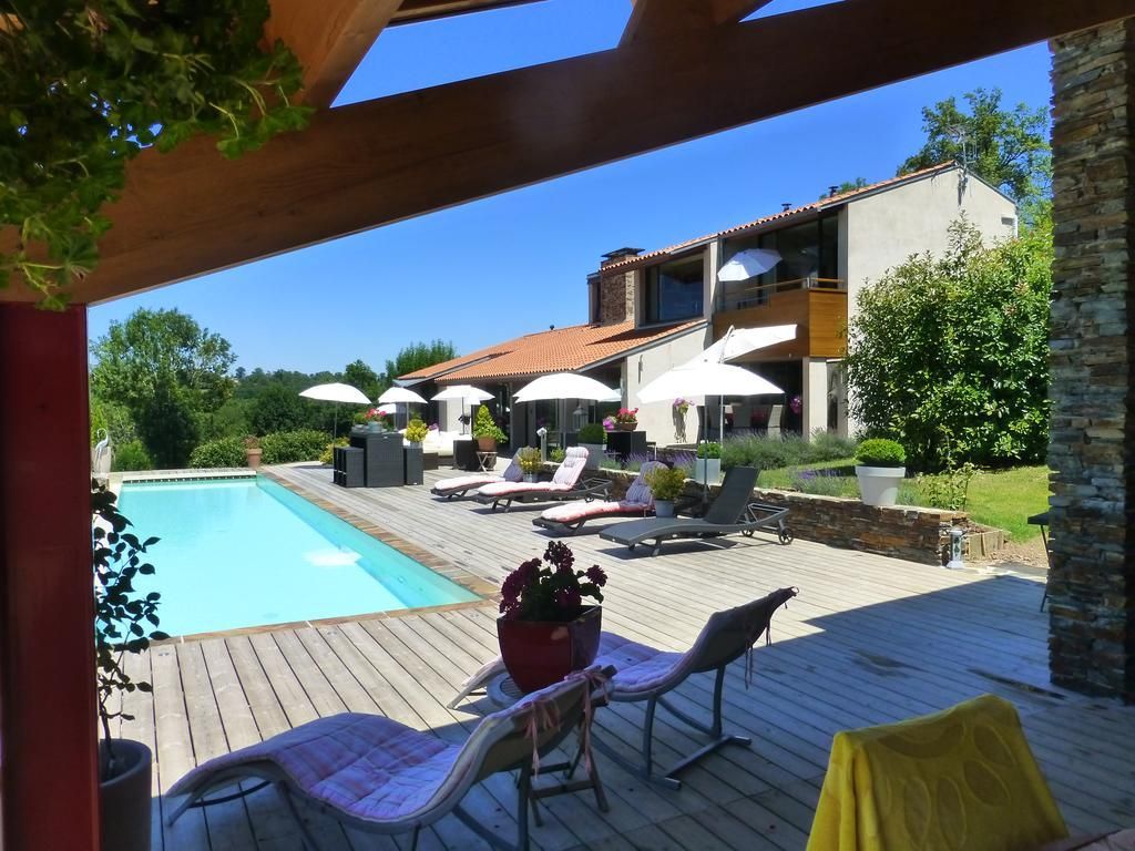 Daniel et Olivier proposent des hébergements version gîte ou chambre d'hôtes dans une maison d'architecte à flanc de colline, dans le Cantal, sur 7 hectares de prairie. Piscine extérieure (chauffée de mi-Mai à mi-Septembre), à débordement côté vallée. Pool-house avec cuisine d'été équipée, plancha à disposition. Salle de douche et sanitaires. Naturisme.