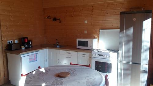 - Le Ptit Chalet de 30 m² pour 2 à 4 personnes: séjour cuisine et mezzanine, s. d'eau et wc douche à jets hydromassants
