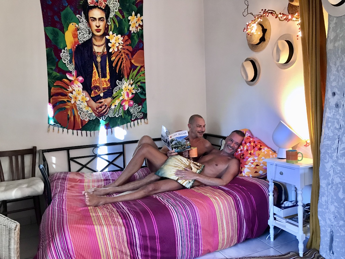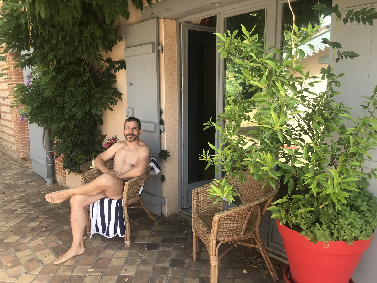 « J'ai passé un séjour de rêve dans ce paradis de verdure. Jardin d'Éden à deux pas du centre ville. Maison surprenante, colorée chaleureuse vraiment originale. Le salon d'été est cosy et bercé de chant d'oiseaux. Le gars est vraiment sympa fantaisiste mais fiable. Ambiance décontractée. Mes voisins de chambres : un commercial hétéro naturiste TRÈS friendly et un étudiant gay et cool avec qui nous avons refait le monde nus comme des anges. Marc offre aussi ses services de masseur. Et c'est vraiment un pro même s'il vous dira que c'est pas son job. Parfois diners d'hôtes à partager selon l'humeur qui est souvent excellente ! (Pour moi la plancha était parfaite). A très vite K »