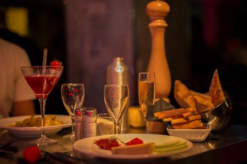 Au bar : Les cocktails de fruits frais sont une spécialité du bar Who's. Un grand choix de Tapas est disponible pour accompagner vos boissons.