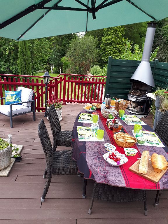 Les petits déjeuners avec nos confitures faites maison (inclus ). Les dîners (si vous avez pris l option) seront servis dans la salle à manger ou sur la terrasse si le temps le permet. ( réservé au plus vite ).