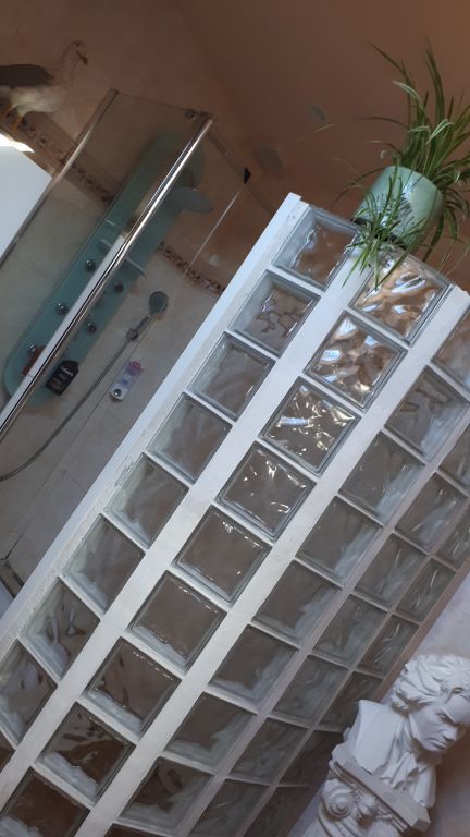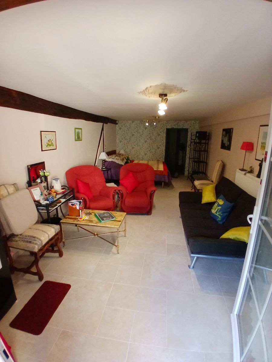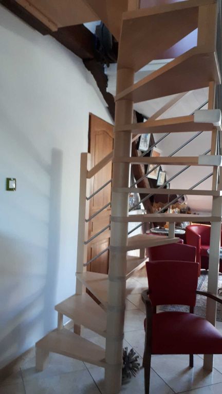 2eme chambre : la mezzanine : avant de monter à l'escalier 2quarts tournant, pour accédé à votre chambre ( 1 porte à clef et paroie isolante). En bas de cet escalier: Se trouvele " chez nous" la douche et les espacess communs, ainsi que notre chambre. Pour votre lit double (140X190), des fauteuils et une table de lecture. Les poutres de la charpente sont apparentes, votre télévision au pied du lit, votre cabinet de toilette avec lavabo indépendant ; sur le même pallier que votre espace..La douche est à partager avec nous ; au même étage que notre espace vie.