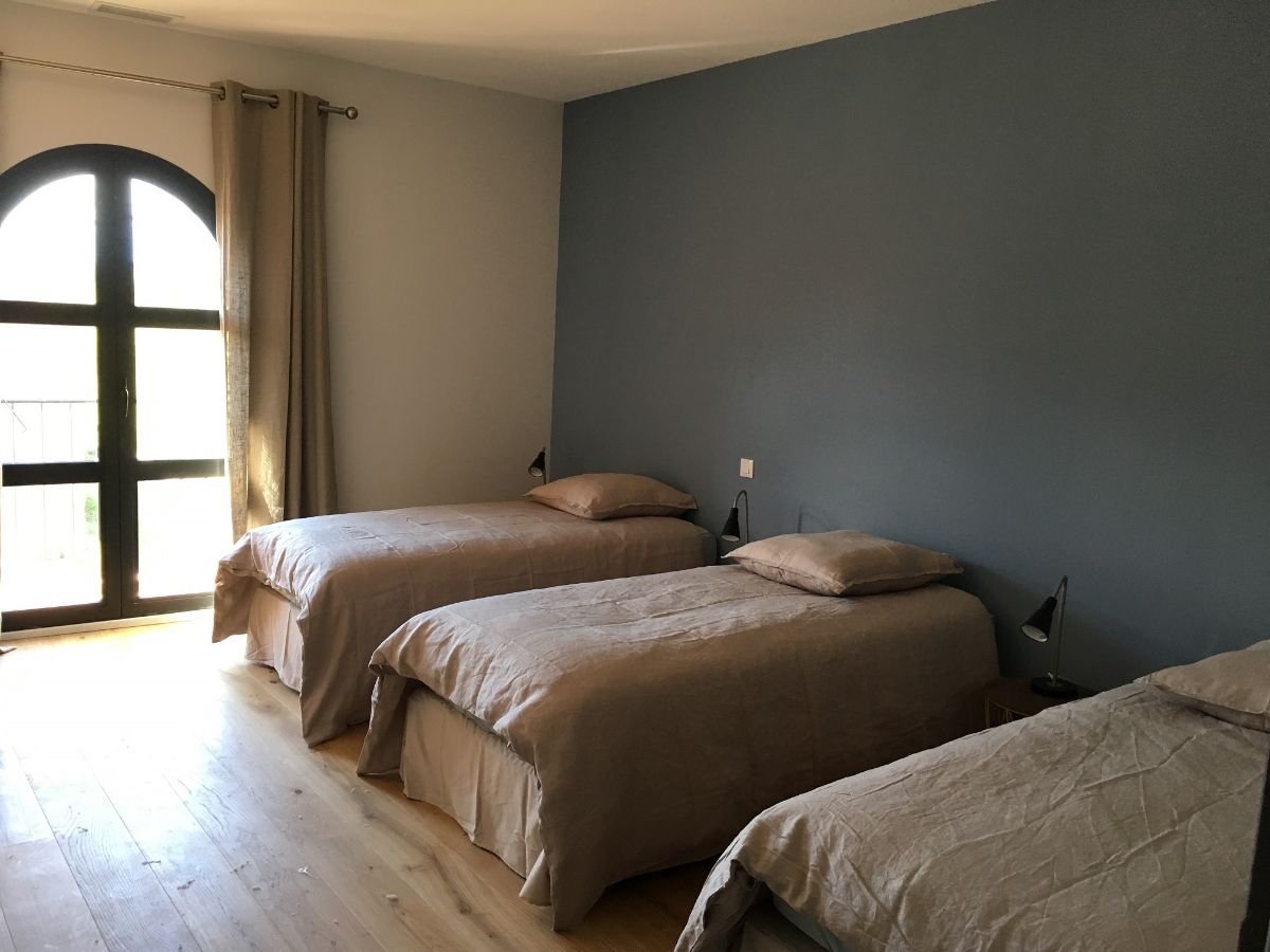 La maison parfaitement équipée et climatisée : 4 chambres, literie haut de gamme, linge de maison fourni, 3 salles d’eau avec douche à l’italienne, 3 wc, 1 grand séjour avec cuisine (70m²) avec un poêle à bois.