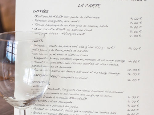 Dans un cadre élégant Guillaume Henrion décline une cuisine de tradition, basée sur des viandes françaises et des légumes de saison, produits localement. Les 15 années passées à confectionner les gâteaux du Salon de Thé ont ouvert la voie pour qu'il fasse de sa passion un métier.