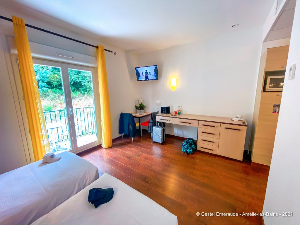 Castel Émeraude est à l'origine une bâtisse bourgeoise construite au début du 20e siècle. Transformée en résidence de vacances et hôtel restaurant dans le début des années 60, il se présente aujourd'hui comme un Appart'Hôtel offrant des prestations de séjours variés dans un cadre unique à Amélie les Bains.