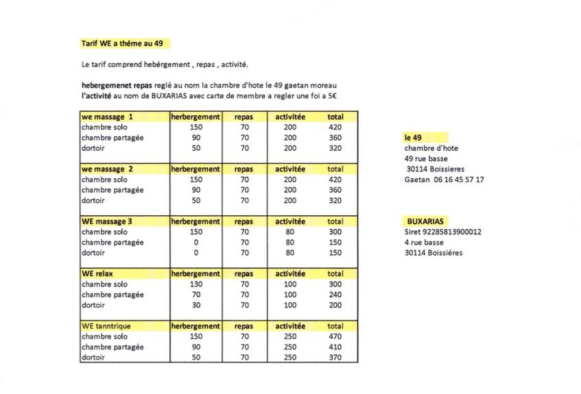 Repas- Activité et Hebergemnt 2 nuits compris