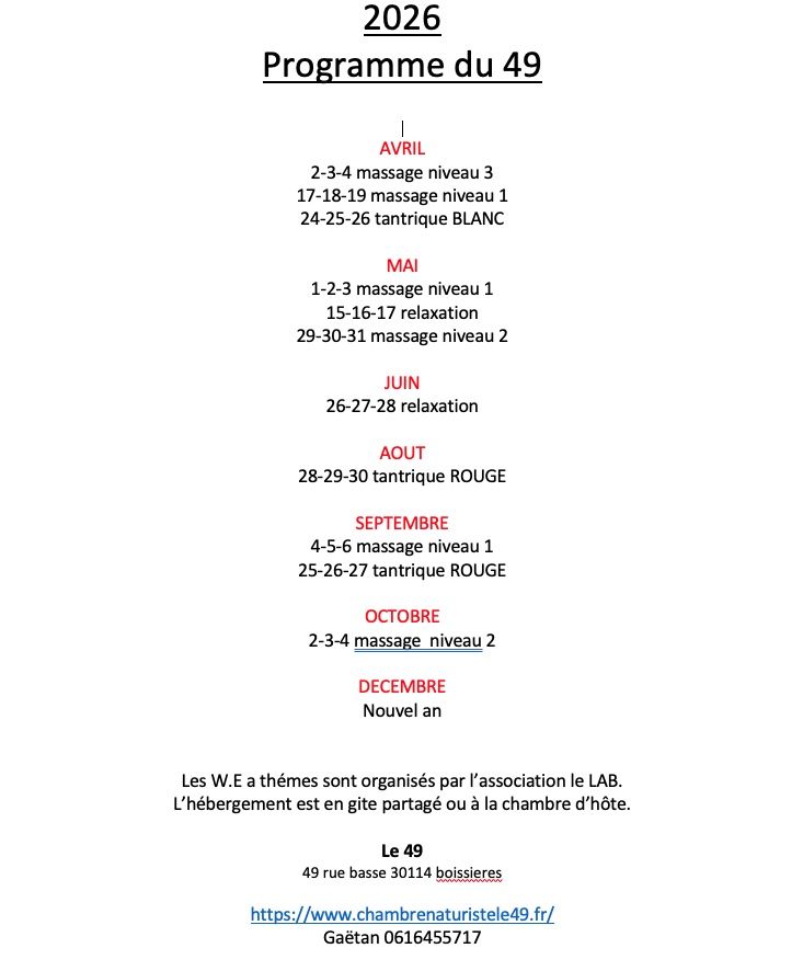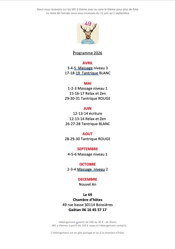 Pour les WE a thémes nous disposons d'une salle de 100m2 chauffé climatisé