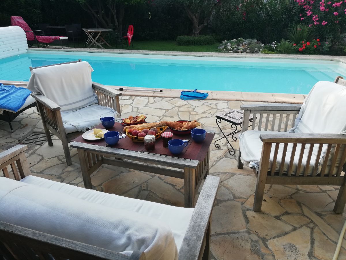 Dans maison d'architecte climatisée avec piscine chauffée (15 avril - 15 octobre selon météo) et Spa jacuzzi 50 jets. Naturiste intérieur extérieur, au coeur d'un jardin fleuri et arboré.