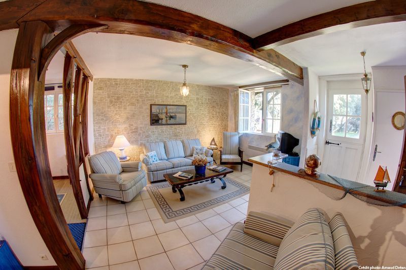 Ce grand appartement, idéal quand vous voyagez en famille ou lors d’un plus long séjour, à la décoration marine et bleu bord de mer vous propose un grand lit double, deux lits simples, un salon, salle de bain avec douche et d’une grande cuisine équipée avec son coin repas. Située au rez-de-chaussée du cottage avec sa terrasse et sa vue sur le bois de chênes verts.