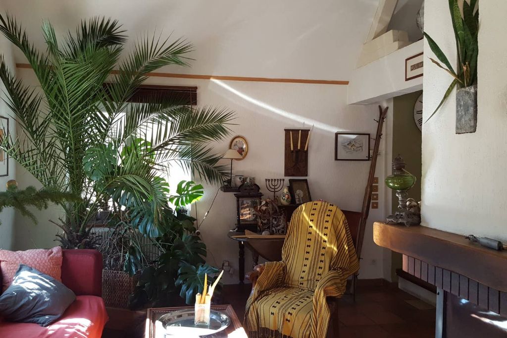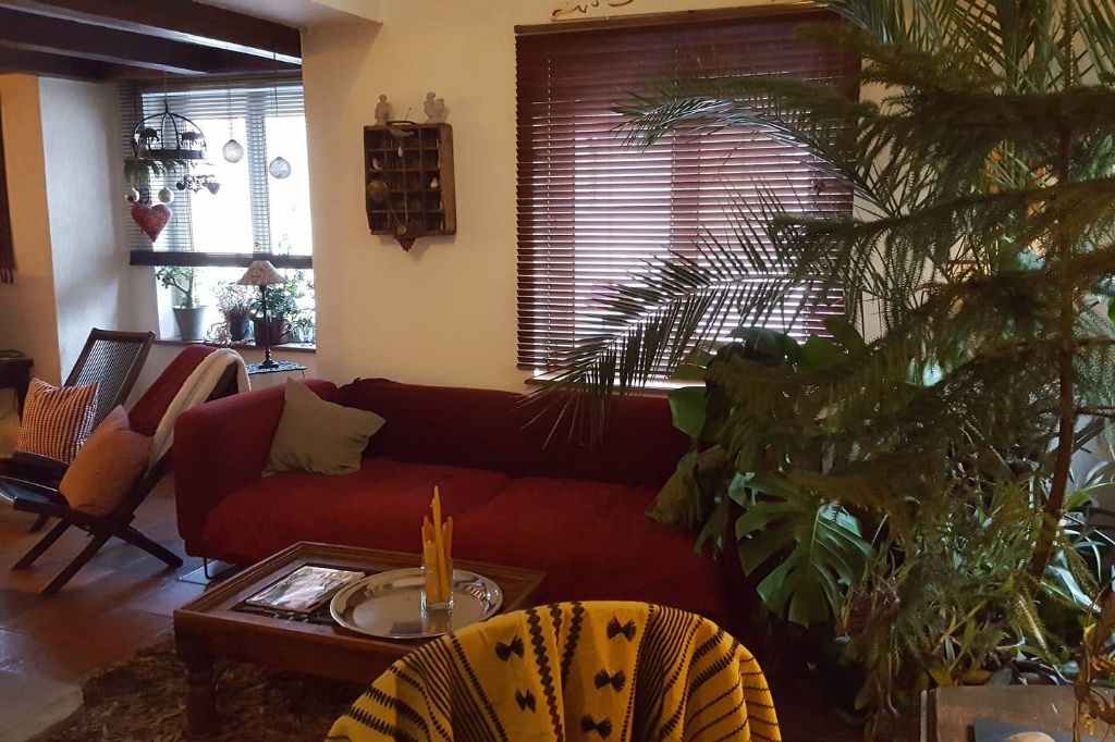Pièce commune avec les propriétaires : Grand séjour avec cheminée ouvert sur la cuisine où vous sera préparé le petit déjeuner.