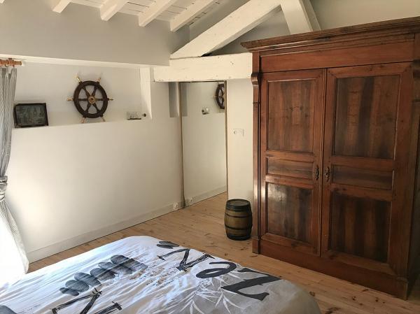 1 à 2 personnes - 1 lit en 160 cm . Évadez-vous dans cette chambre de 19m2 à l'esprit maritime (1 lit en 160), équipée d'une salle de bain et d'un WC.