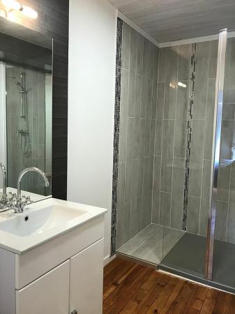 Dans l'esprit des anciennes manufactures, cette grande chambre de 34m2 avec sa verrière ouverte sur sa salle de bain est équipée d'une salle de bain et d'un WC séparé.