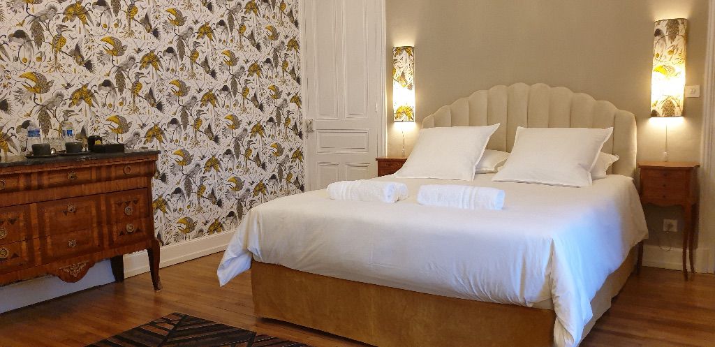 Chacune des 4 chambres, la chambre aux Oiseaux au style Louis XVI, la chambre des Panthères, de style Empire, la chambre des Girafes, de style Louis Philippe, la Chambre Bleue de Style Louis XVI, distille une élégance intemporelle au style très français.