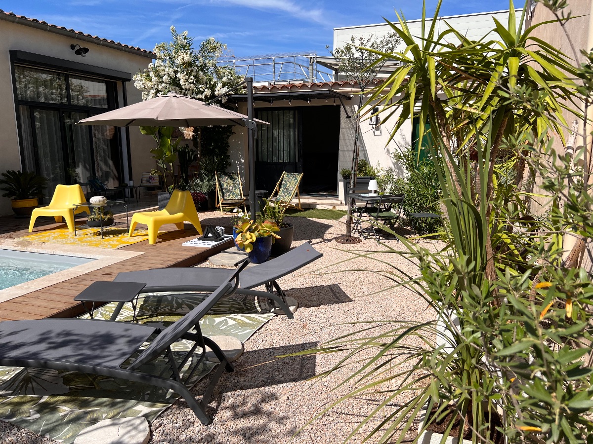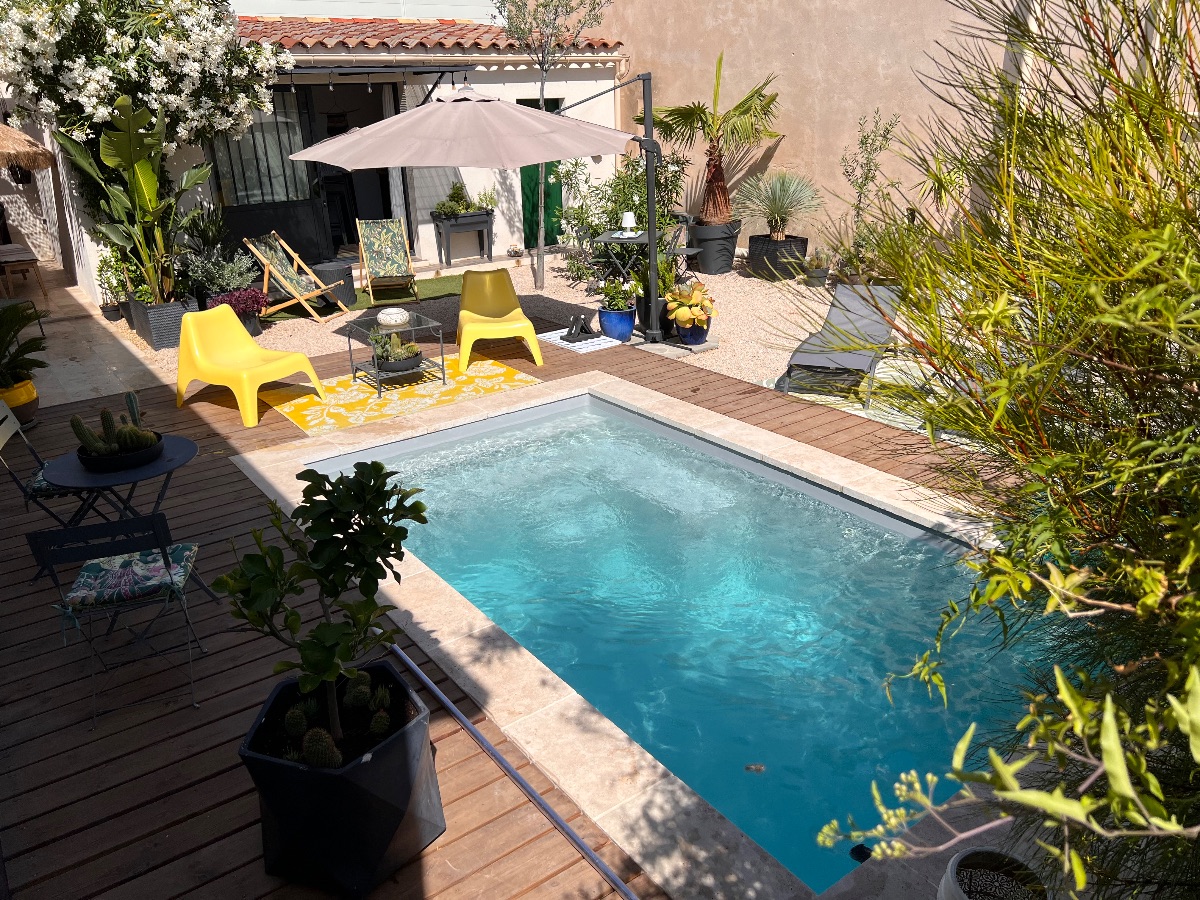 Jardin et piscine sont à partager avec vos hôtes, Jean Philippe et Franck.