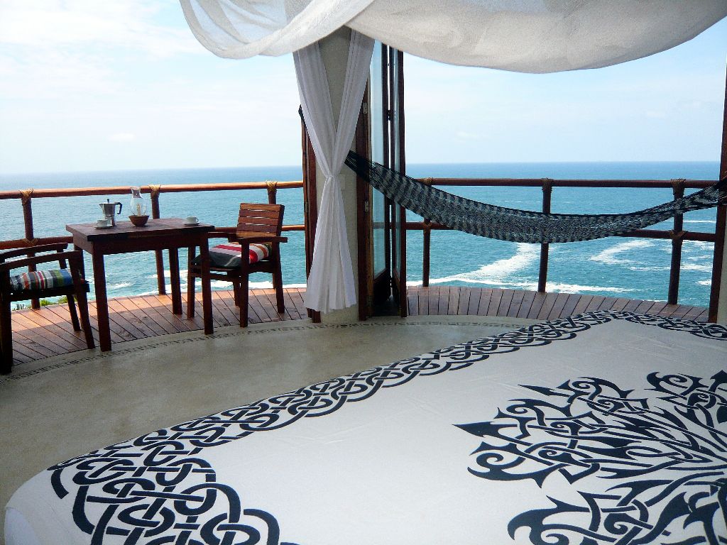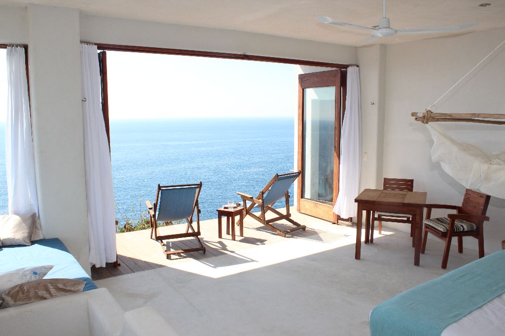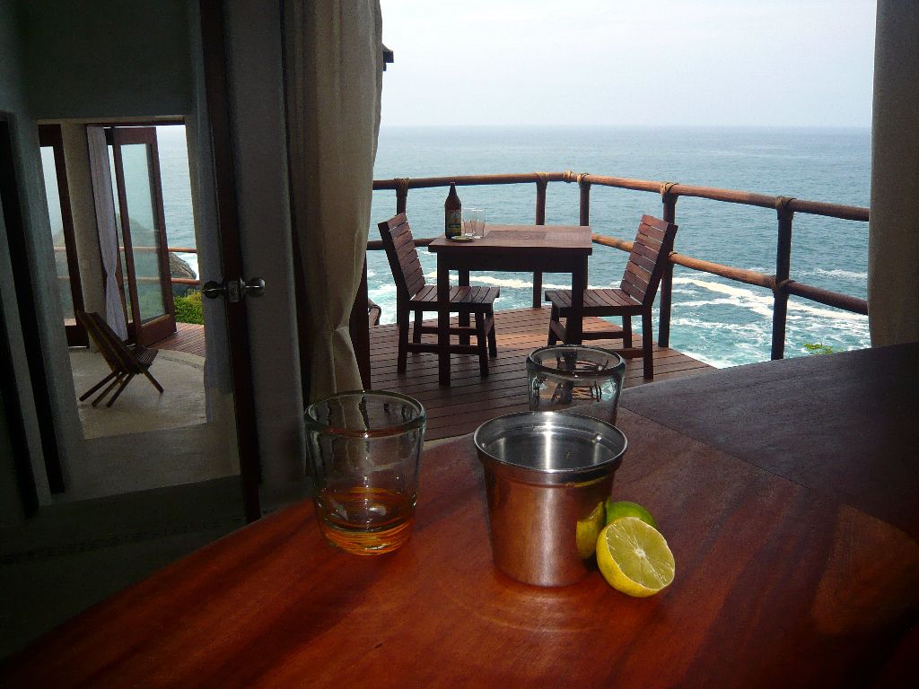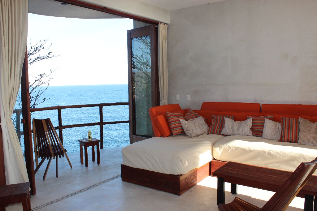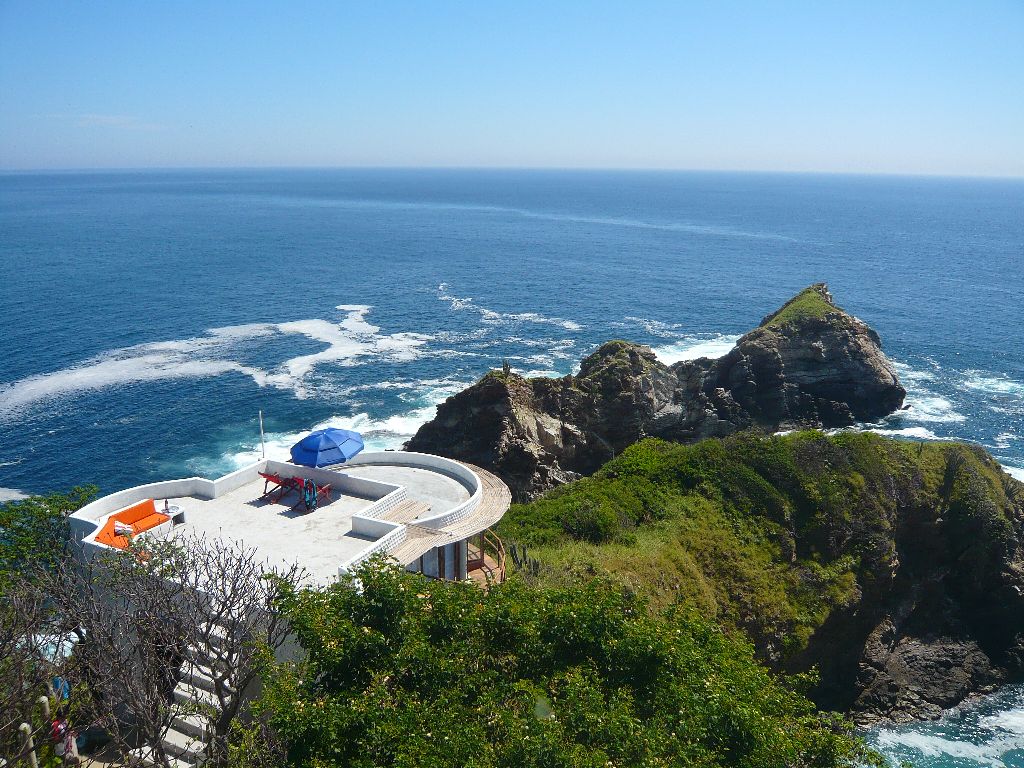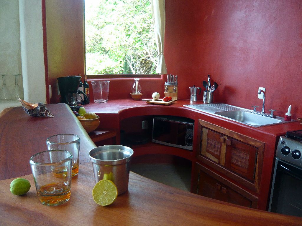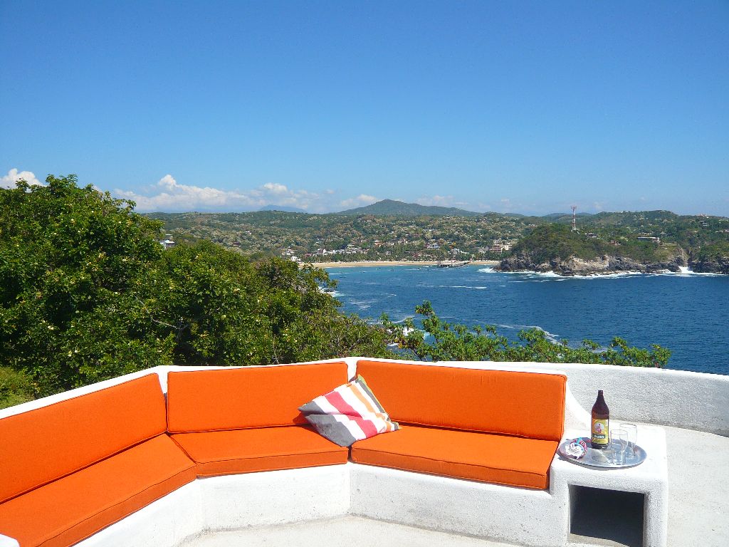 La Villa Roja, una maison équipée comportant 2 pièces, perché su un reggiseno di terra e offrendoti una vista sul mare a 270 °, con la baia di Puerto Angel in Est e la vista su l'oceano al sud e alla ouest. 1 a 4 persone. Plusieurs ventilatori mais pas d'air conditionné.