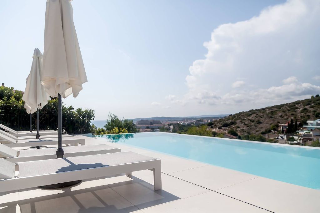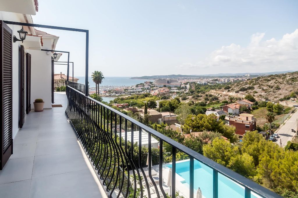 Questa villa per vacanze si trova su una collina che domina la città di Sitges e gode di una vista panoramica sul Mar Mediterraneo da un lato e sulle colline del Parco Naturale del Garraf dall'altro.