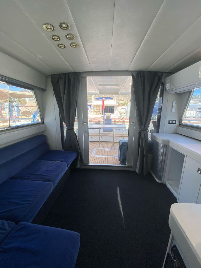 La nostra barca è attrezzata per una vita confortevole a bordo (aria condizionata, soggiorno con TV, minibar, angolo cottura con forno a microonde, 2 bagni con doccia e WC, 1 ampia camera con letto da 140 cm e 2 camere comunicanti ciascuna dotata di 2 letti singoli. Armadi e rimessaggio in tutte le aree della nave.