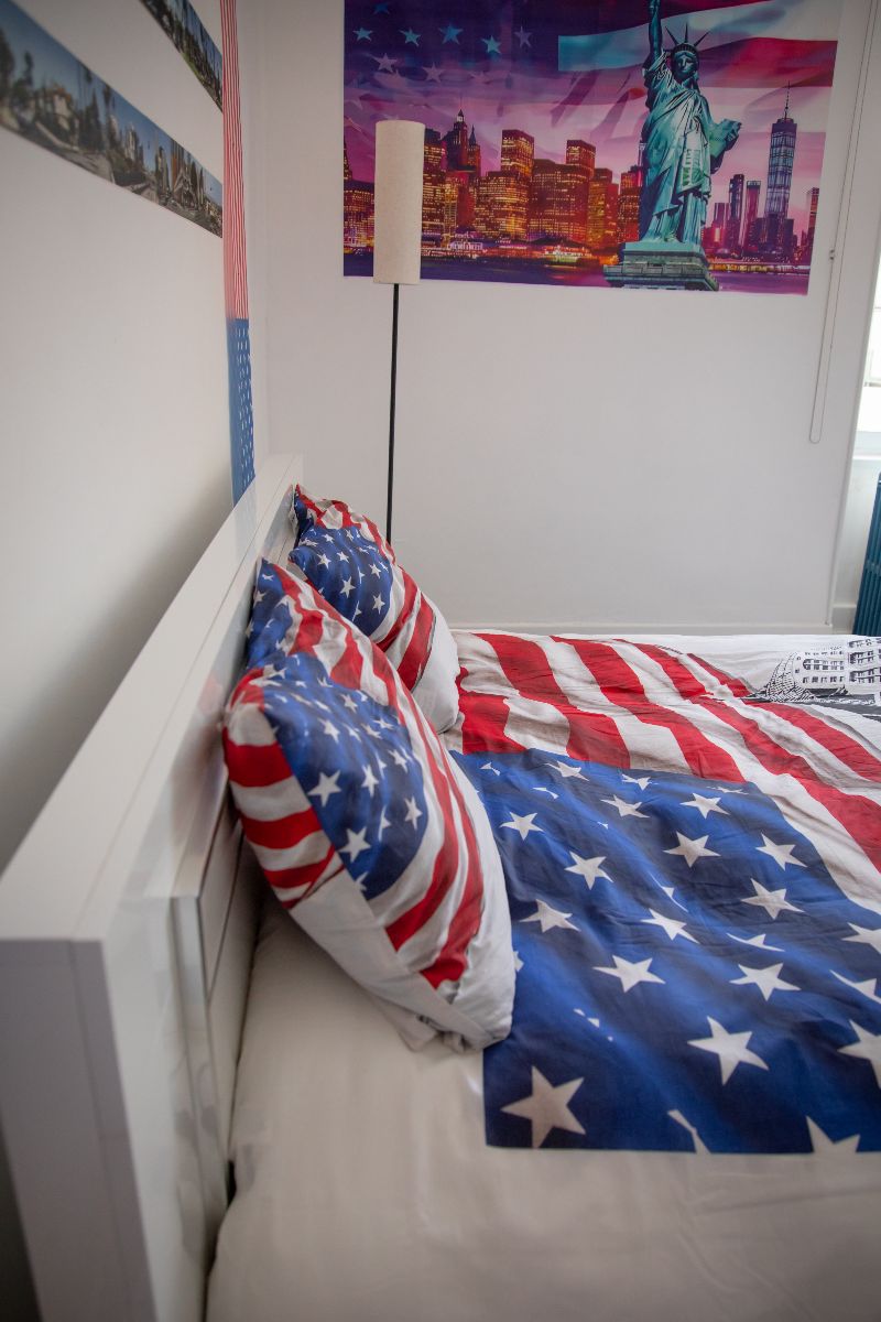 La casa dispone di quattro camere per gli ospiti, tutte con letto Queen Size e connessione Wi-Fi. Ogni camera vi farà viaggiare in una città del mondo grazie a una decorazione curata nei minimi dettagli. Due camere dispongono di balcone. Tre bagni con WC, un salotto, una sala da pranzo e una grande cucina, tutti accessibili agli ospiti, completano la casa.