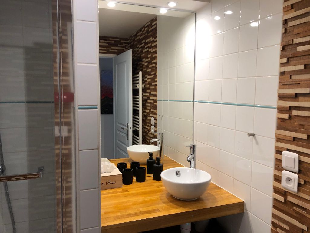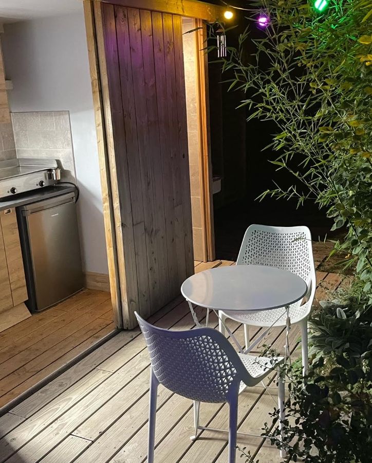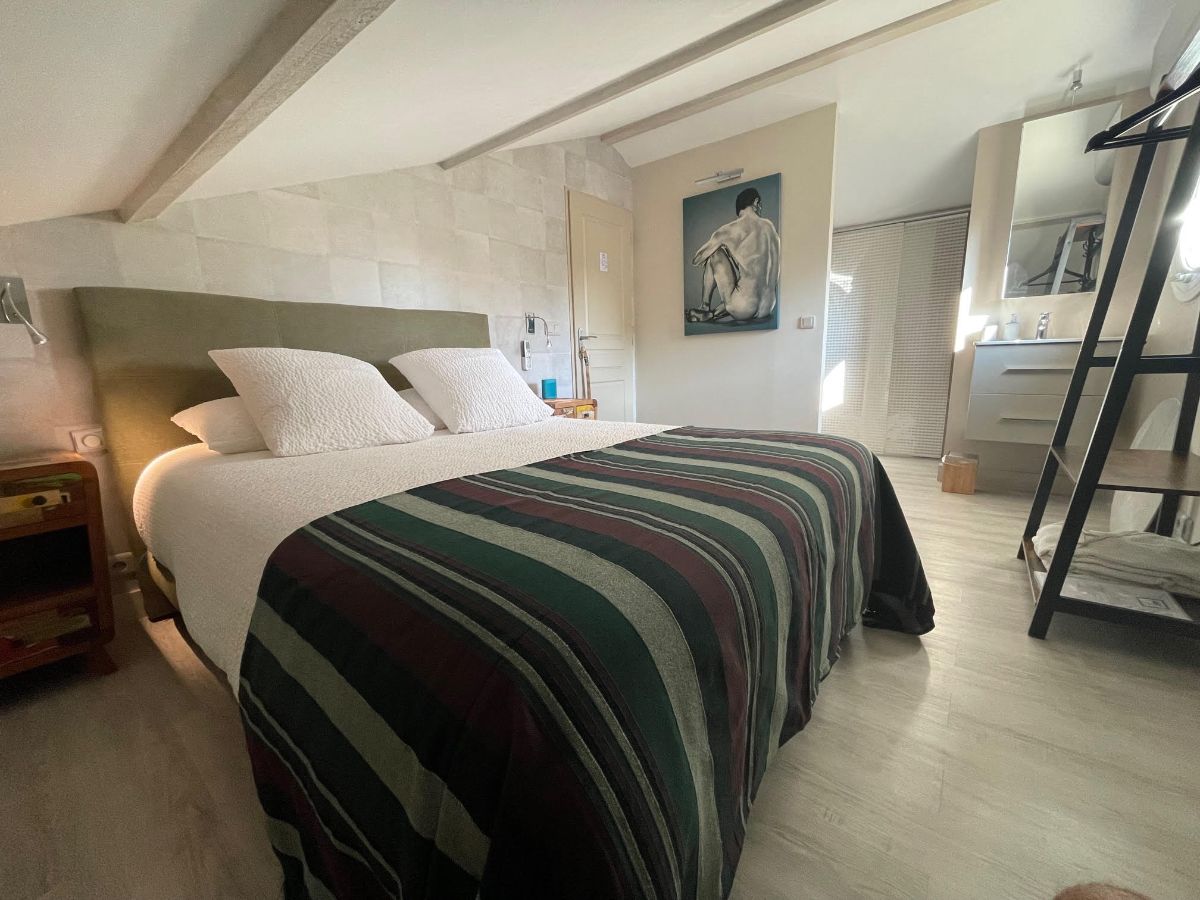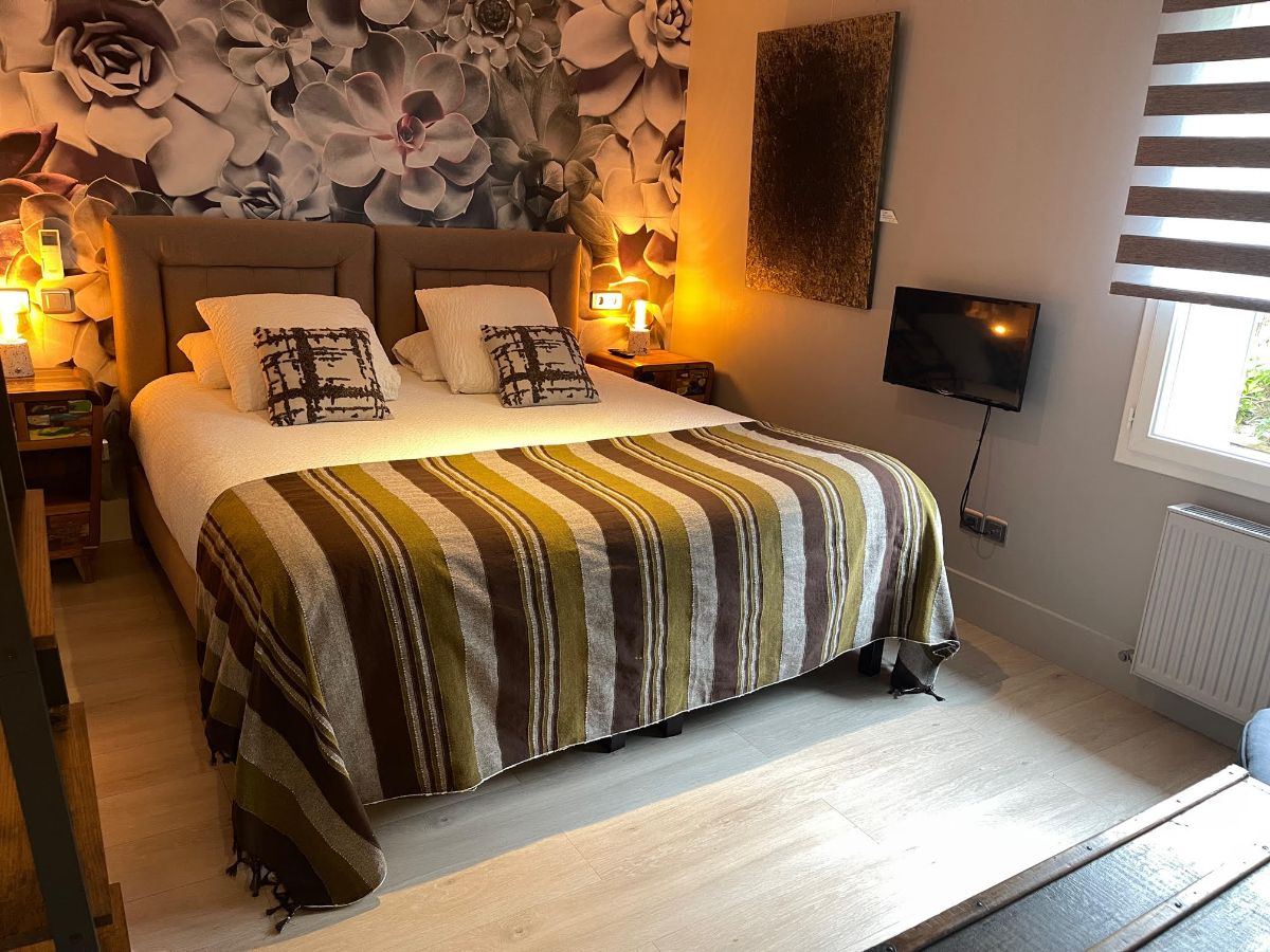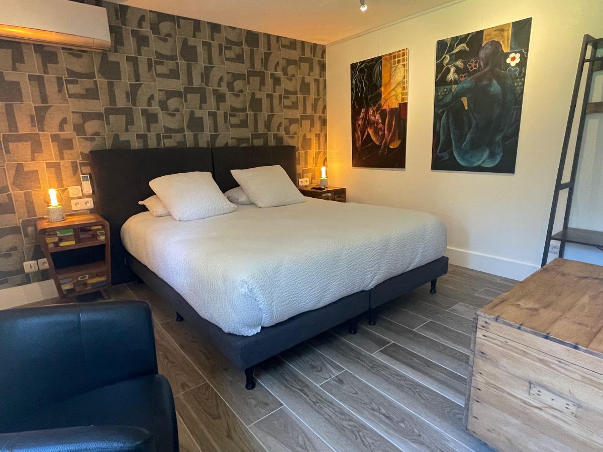 De tweede slaapkamer is La Suite gelegen op de begane grond met een aparte ingang. Het is comfortabel geschikt voor maximaal 4 volwassenen. De suite heeft een slaapkamer, een woonkamer, een toilet gescheiden van de eigen badkamer en een kitchenette (gootsteen, koelkast, magnetron, inductiekookplaat, waterkoker). Het beddengoed is van uitzonderlijke kwaliteit: een kingsize bed van 180x200 in de slaapkamer (kan worden geconfigureerd als 2 bedden van 90x200) en een slaapbank die kan worden omgevormd tot bed van 140x200 met traagschuimmatras van 22 cm dik. Gegarandeerde rust. Uitrusting in de suite: omkeerbare airconditioning, kledingkast, televisie met TNT- en ChromeCast-kanalen, bluetooth-luidspreker.