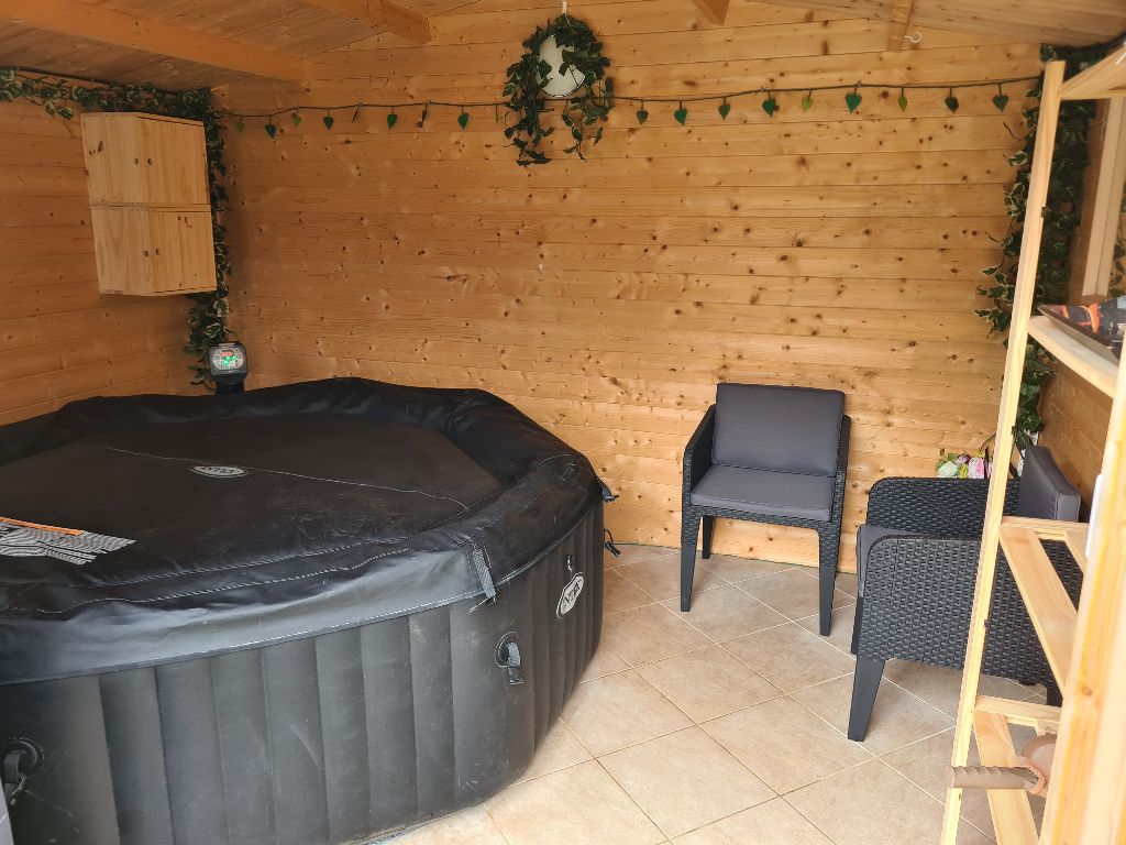 Tuin van 1700m2 volledig omsloten met directe toegang tot de oevers van de Eure (2 opblaasbare kano's beschikbaar) en chalet met 6-persoons jacuzzi (jets en bubbels)