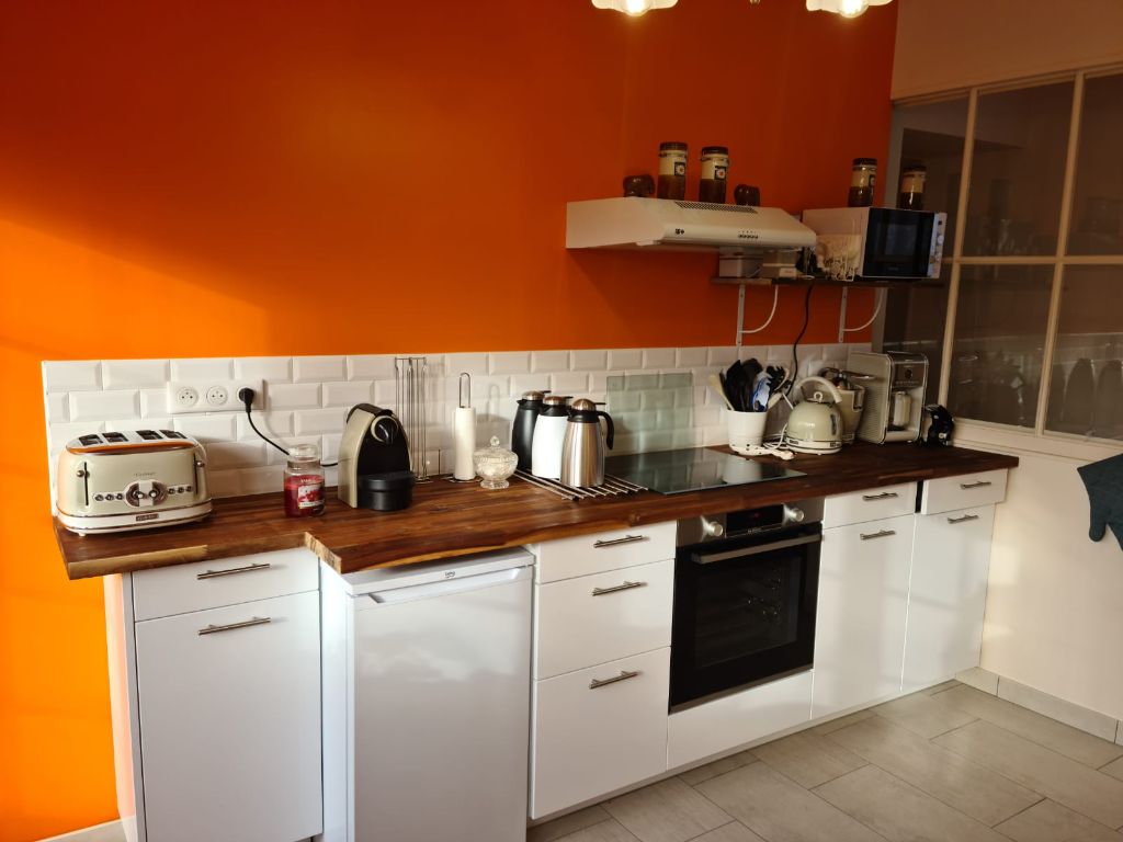 Volledig uitgeruste keuken tot uw beschikking, eetkamer en woonkamer (converteerbare banken in de woonkamer en in de bibliotheek op de bovenverdieping in 140X200)