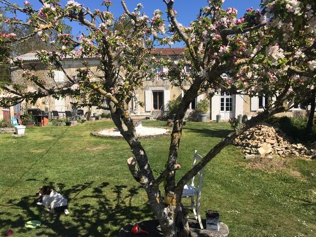 Oorspronkelijk eigendom van de tante van Andrew, kochten we het huis 13 jaar geleden. We zijn in 2019 begonnen met renoveren, het huis is nu comfortabel en biedt drie slaapkamers en-suite: "Geais", "Hoopoes" en "Swallows"; elk van hen heeft een andere stijl.