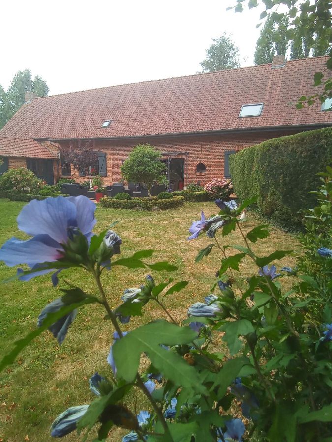 In een landelijke omgeving aan de voet van de Vlaamse bergen, tonen we u twee kamers met gedeelde badkamers voor een prijs van 75 euro, evenals thee en koffie op uw kamer, uitgebreid ontbijt inbegrepen met honing, boter van de boerderij, zelfgemaakte jam en eieren van onze kippen.