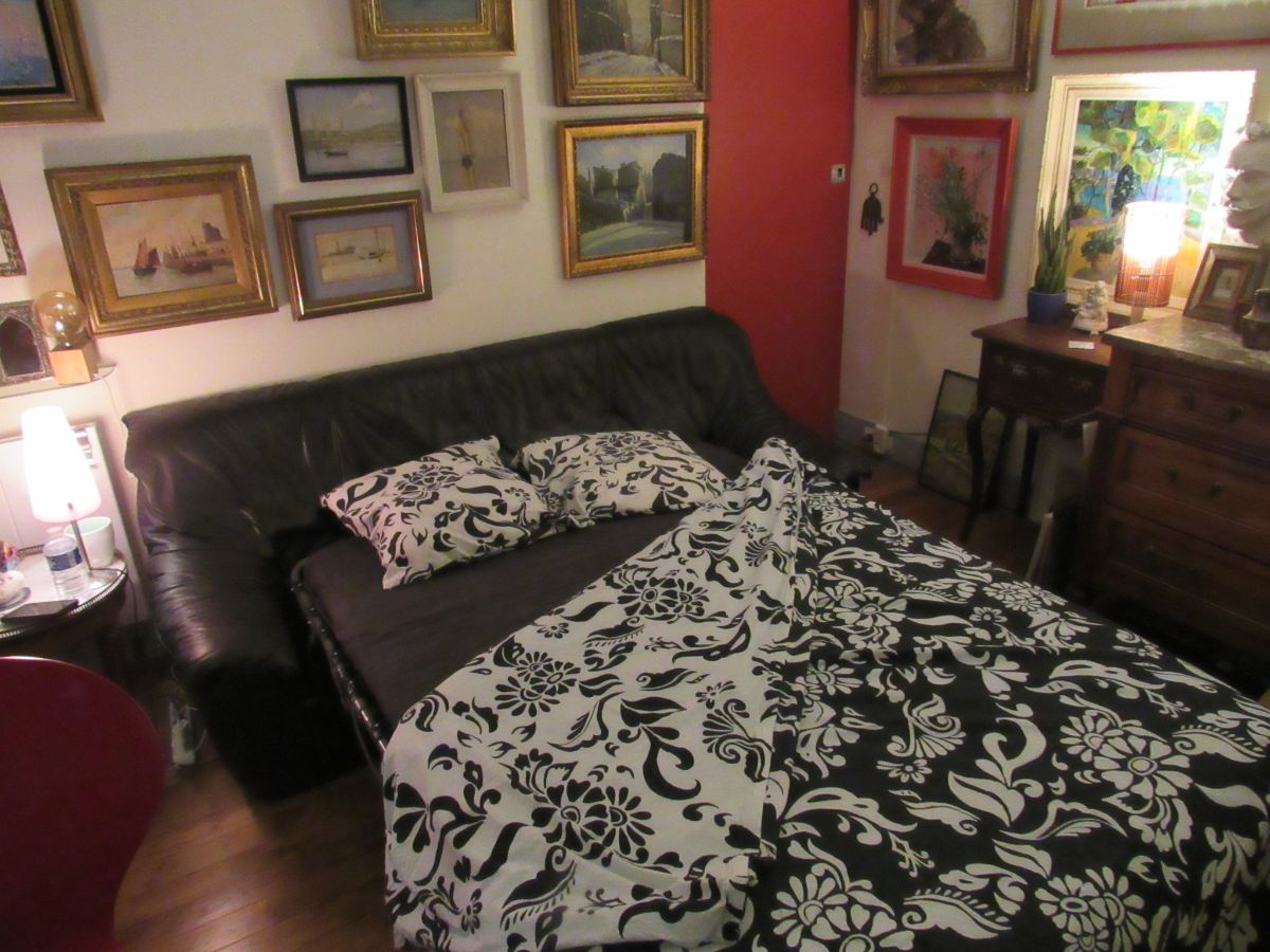 In een modern gerenoveerd oud appartement, zeer rustig, schoon en goed onderhouden, bied ik je de slaapbank aan in de woonkamer (optie 1 = 70€) of mijn slaapkamer (optie 2 = 88 €).