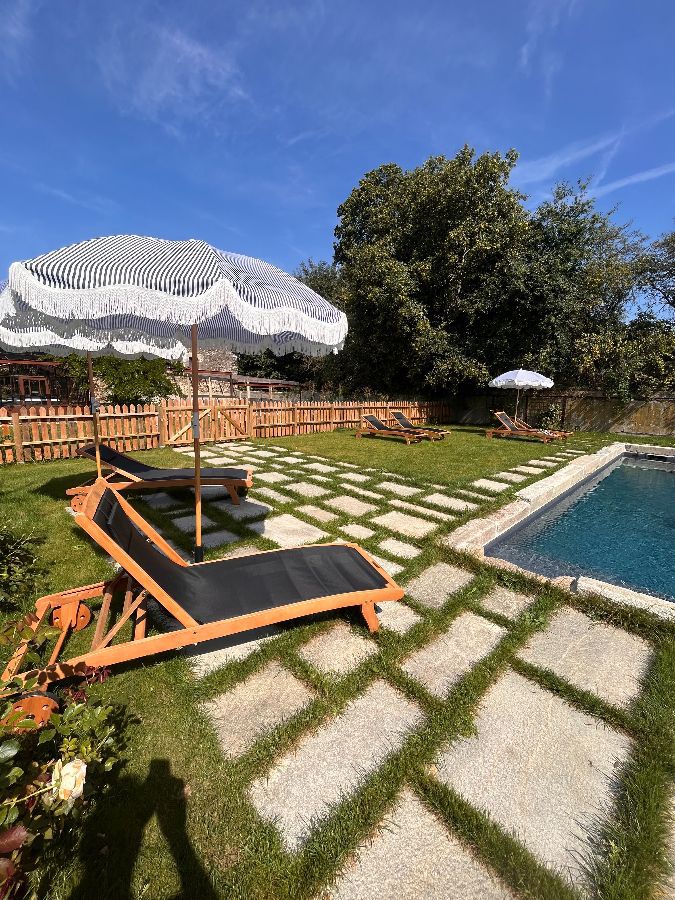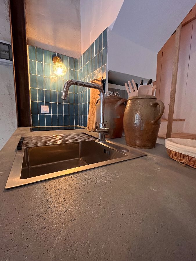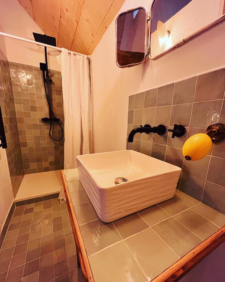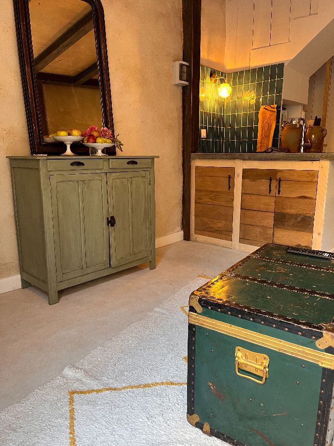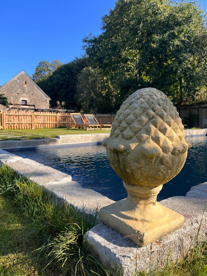 een kleine cocon van zachtheid. Boven is de slaapkamer en de badkamer, waar we gekozen hebben voor katoenen perkal beddengoed voor je nachten. Klein maar zeer goed uitgerust: wasmachine, oven, koelkast, koffiezetapparaat, waterkoker en raclette apparaat. De woonkamer heeft een slaapbank voor een derde persoon. Vanaf het geplaveide terras heb je direct toegang tot de jacuzzi en het zwembad. Je kunt ook rondwandelen in de rest van het park, waar de flora en fauna heer en meester zijn. En als je zin hebt, kun je een schotel met streekproducten voor twee bestellen, of oesters uit Cancale met een glas witte wijn.