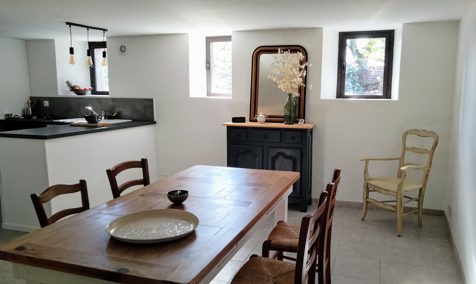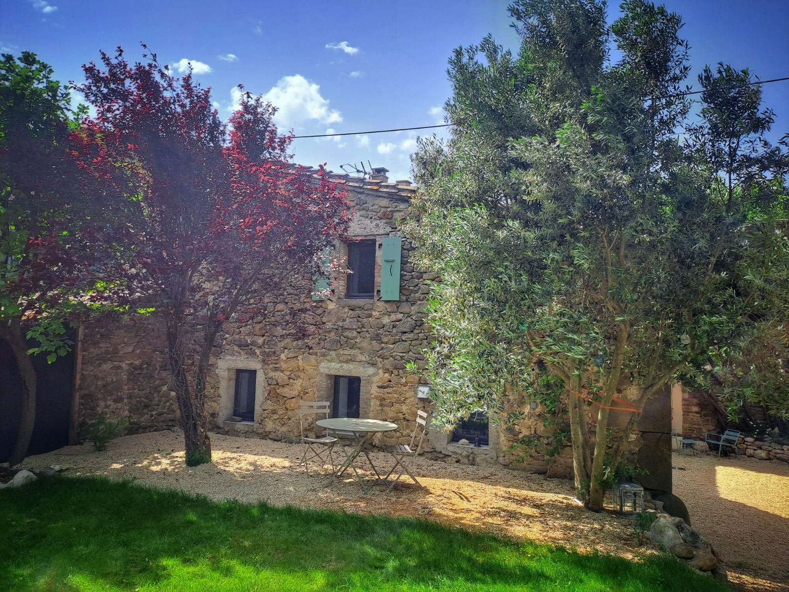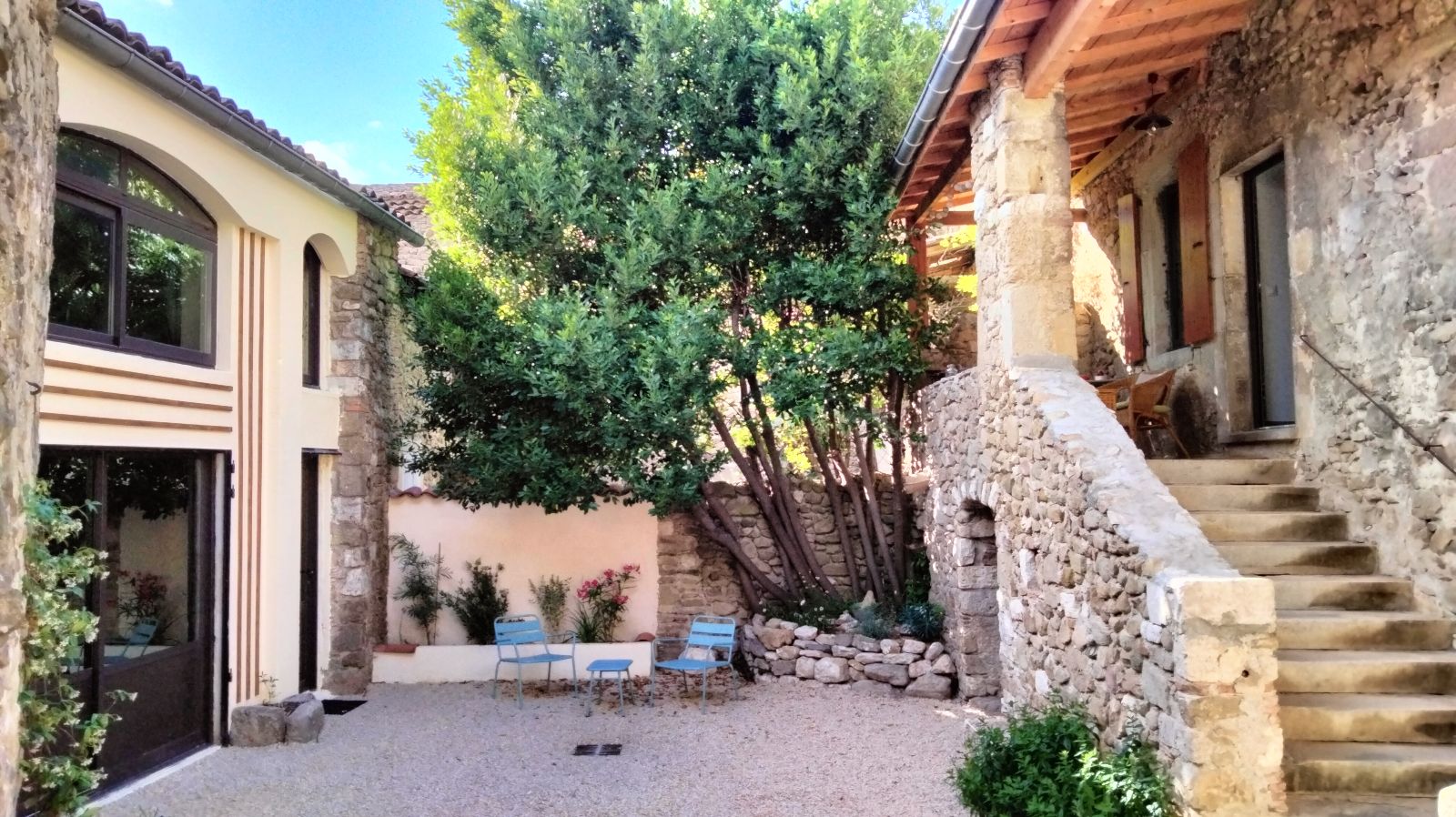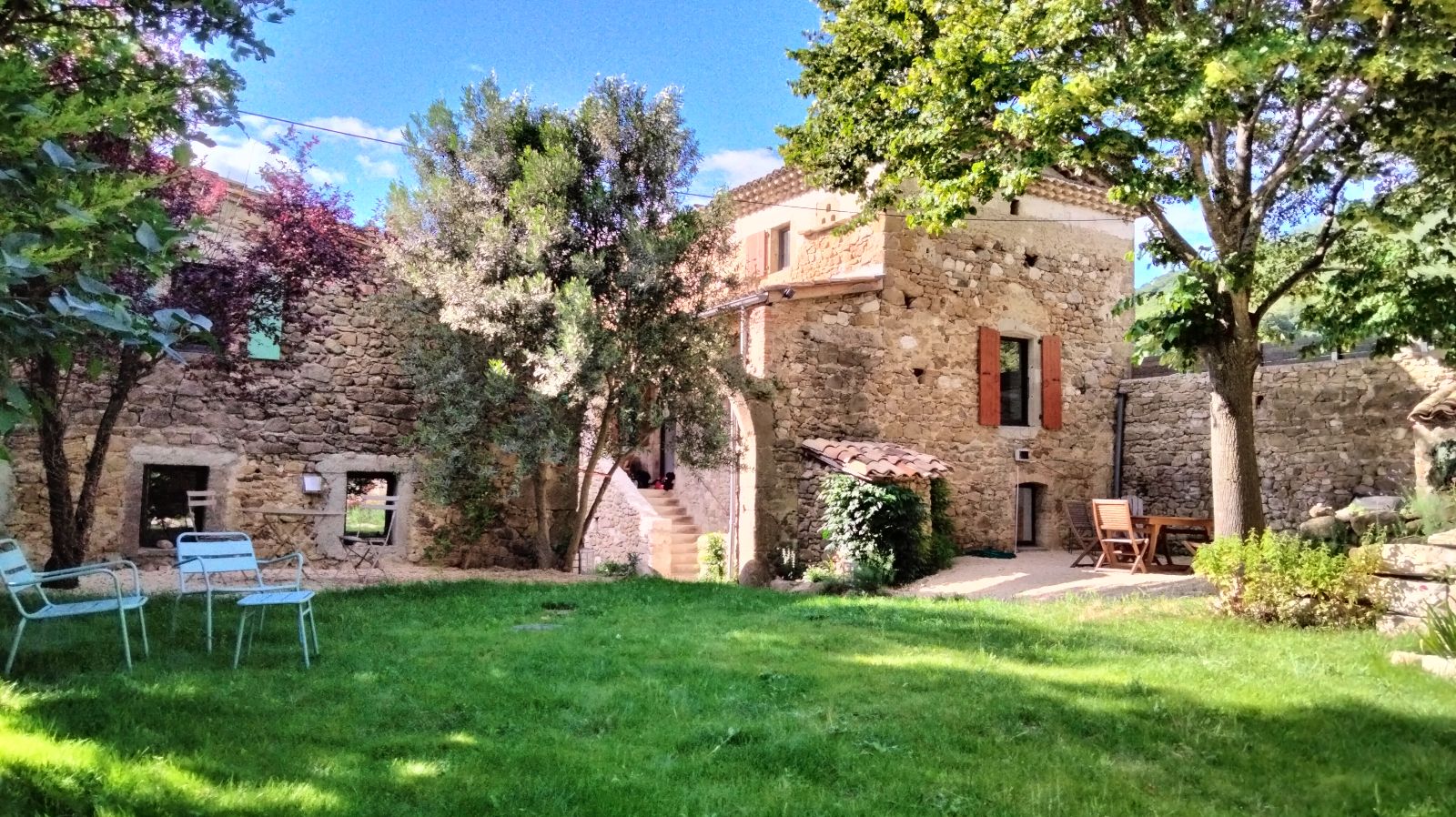2 keukens, 2 woonkamers, 5 slaapkamers en 600m2 omheind terrein met 2 schaduwrijke terrassen, waar u kunt genieten van het gezang van de krekels.