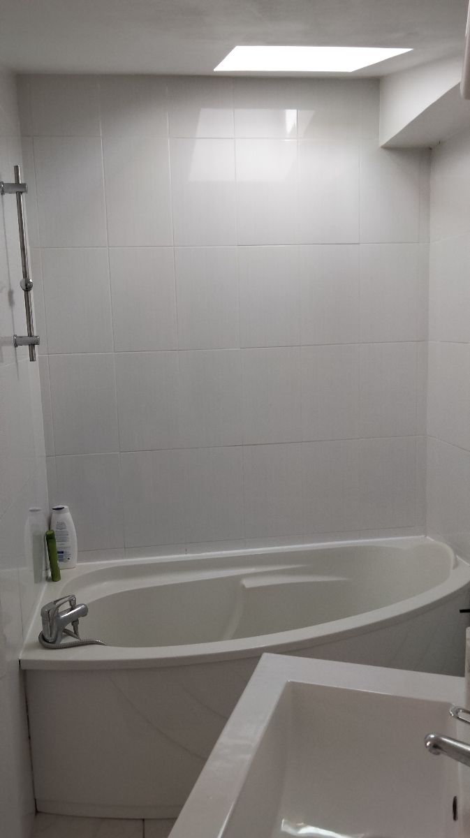 100 m², woonkamer, ingerichte keuken, toilet boven, 2 slaapkamers met eigen badkamer op de 2e verdieping