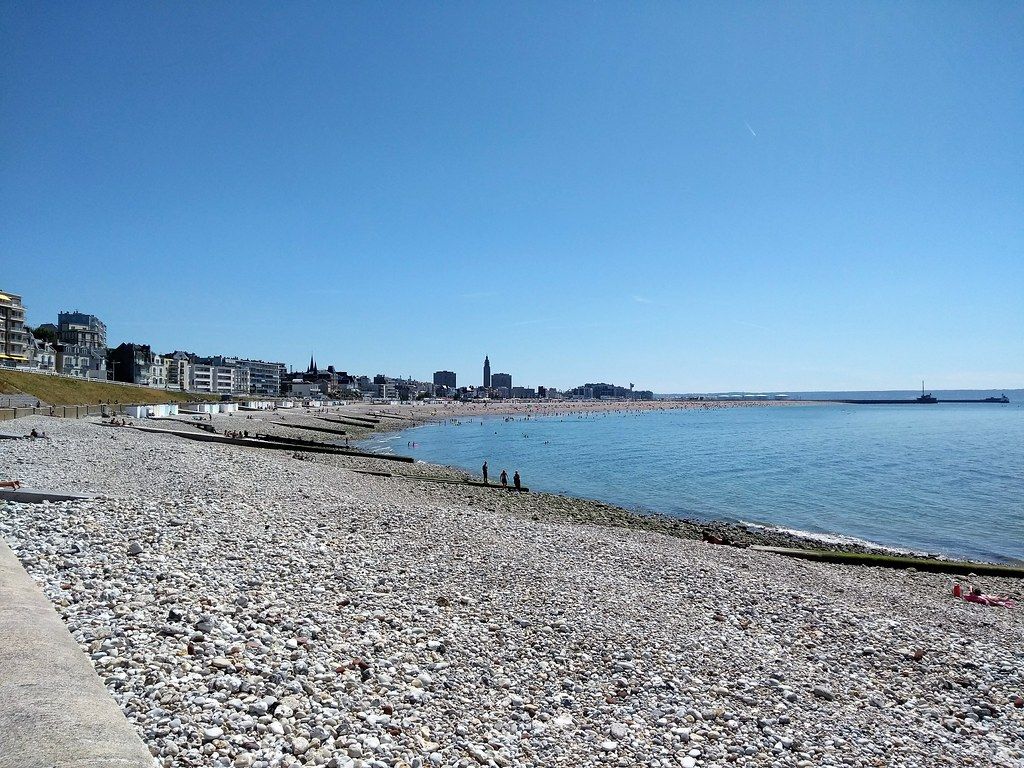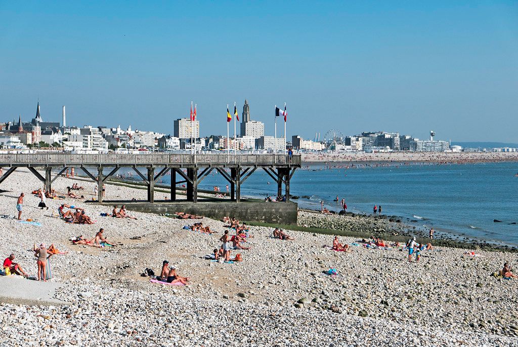 Pour rejoindre la plage, empreintez le boulevard de la mer vers Sainte-Adresse. Au rond point, prendre la direction du phare de la Hève jusqu'à l'ancien Grand Hotêl, puis suivre le boulevard Dufayel jusqu'au bout. Se garer et continuer à pied jusqu'au bout du chemin puis descendre vers la plage et marcher encore 700m sur les rochers.