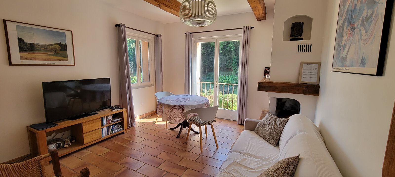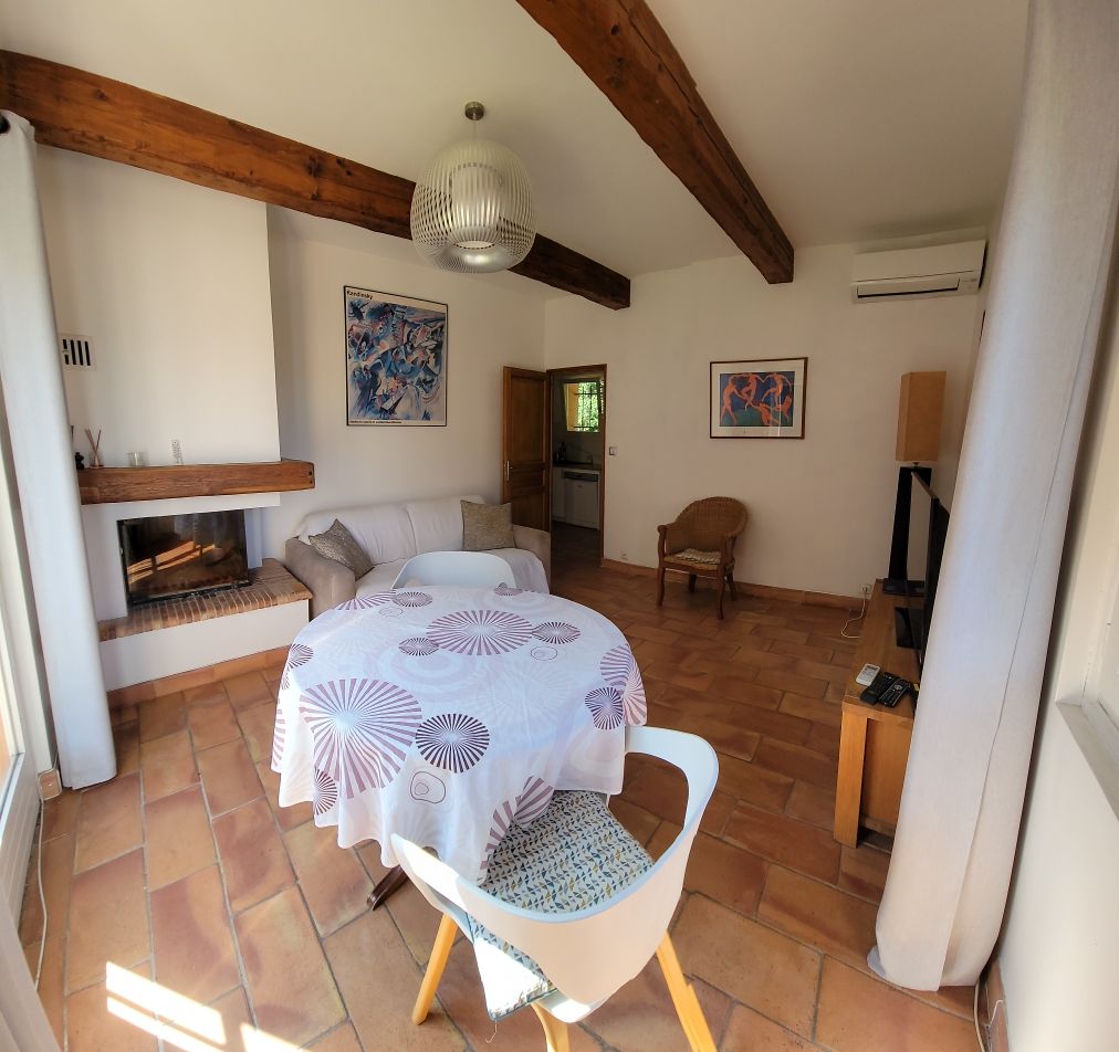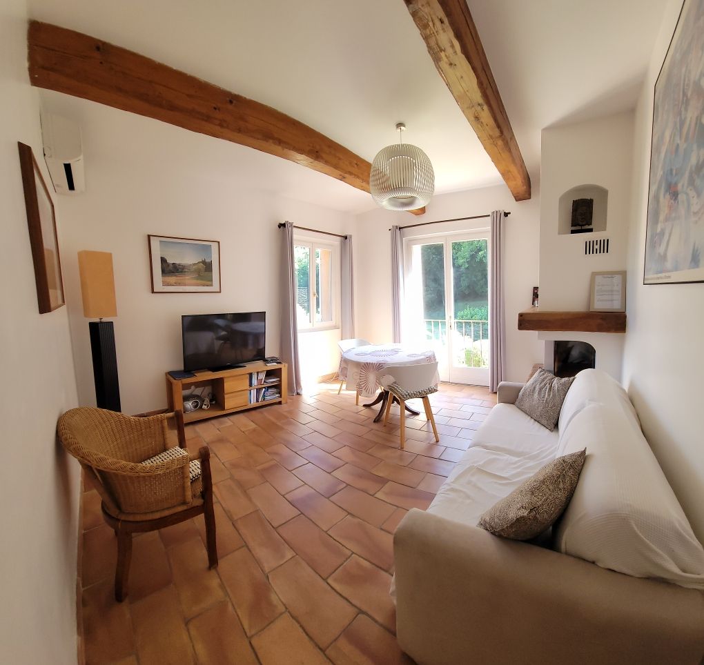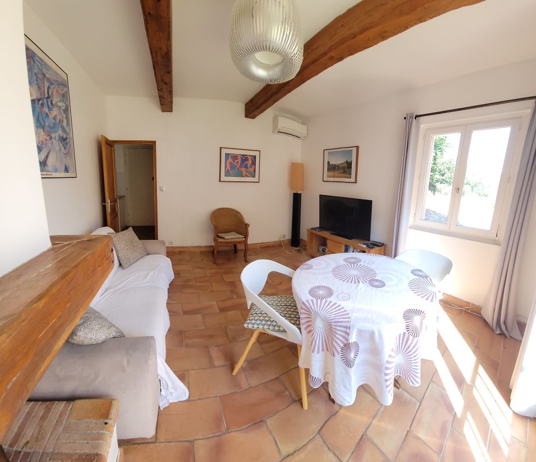 Het kijkt uit over een groot terras en een eigen tuin. Ideaal voor 2 personen, de mogelijkheid om 4 (met een slaapbank voor extra vergoeding).