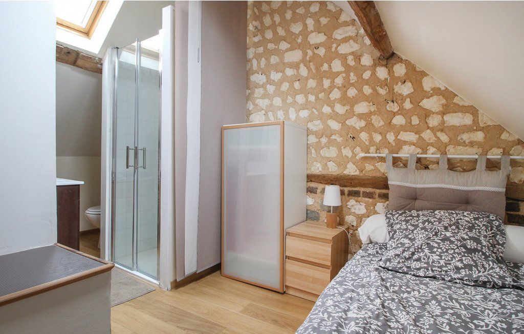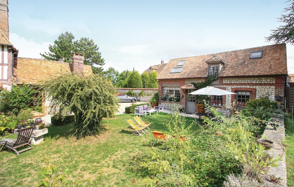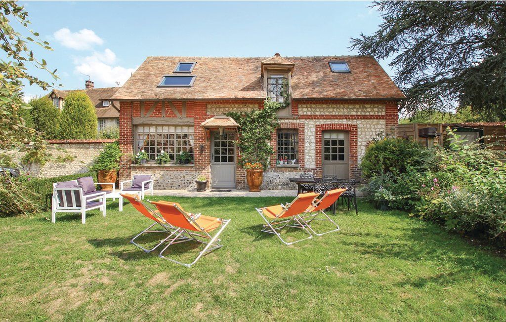 Huis butler baksteen en natuursteen Vernon, met uitzicht op de groene ruimte van de zeventiende herenhuis.