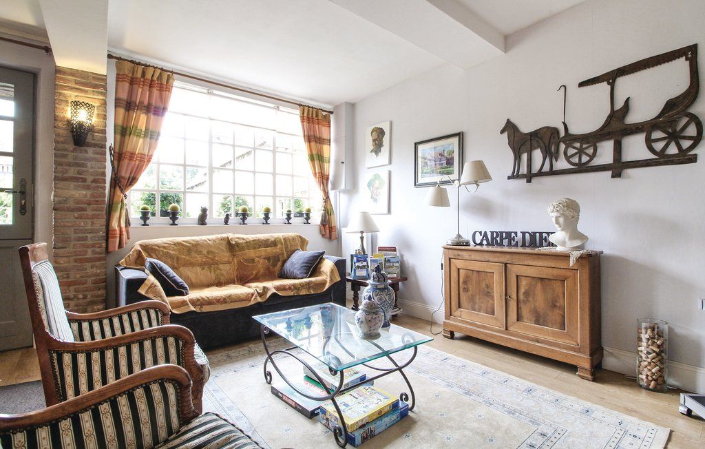 Begane grond: woon-kamer comfortabel, houtkachel, ingerichte en functionele keuken, toilet.
